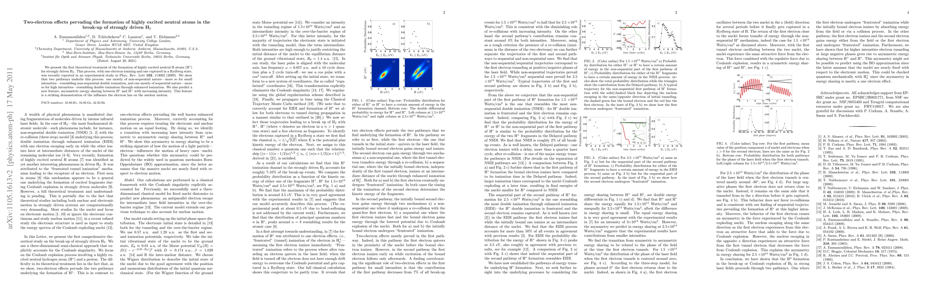 Theoretical research reveals two mechanisms underlying the formation of highly excited neutral H atoms from strongly driven H2 molecules, including non-sequential double ionization and enhanced ionization.