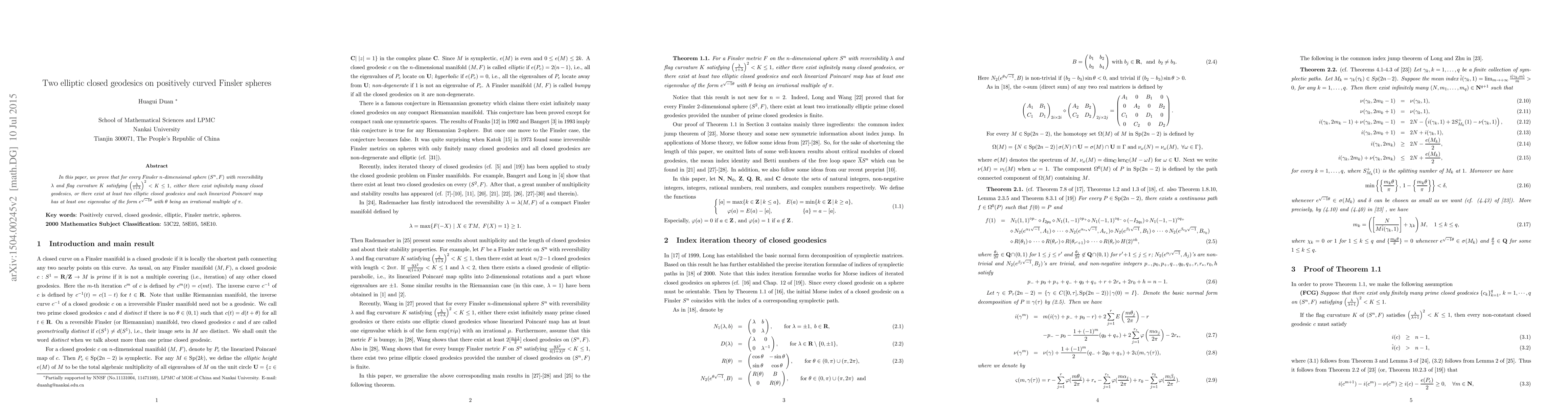 This paper proves that for reversible Finsler spheres with specific curvature conditions, either there are infinitely many closed geodesics or at least two elliptic closed geodesics exist, accompanied by linearized Poincaré maps having eigenvalues that are irrational multiples of $\pi$.