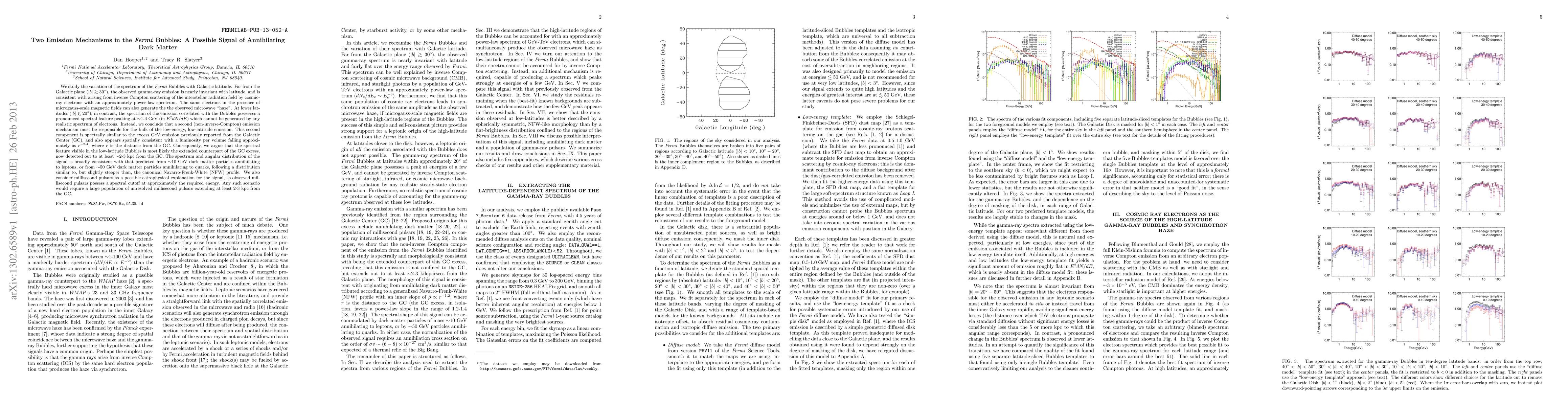 This paper investigates the Fermi Bubbles' gamma-ray emission, revealing two distinct mechanisms: inverse Compton scattering at high latitudes and a non-inverse-Compton mechanism at low latitudes. The latter suggests dark matter annihilation, potentially from ~10 GeV particles annihilating to leptons or ~50 GeV particles to quarks.