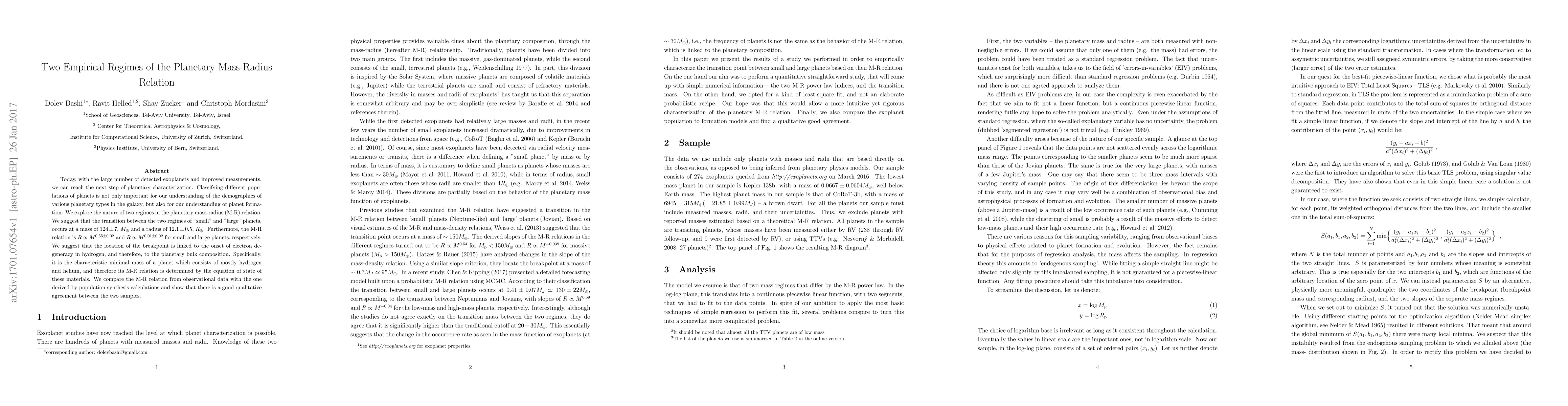This paper identifies two distinct regimes in the planetary mass-radius (M-R) relationship, suggesting a transition at 124 ± 7 Earth masses and 12.1 ± 0.5 Earth radii, linked to the onset of electron degeneracy in hydrogen, influencing planetary bulk composition. The M-R relation shows different scaling laws for small and large planets, with observational data aligning well with theoretical models.