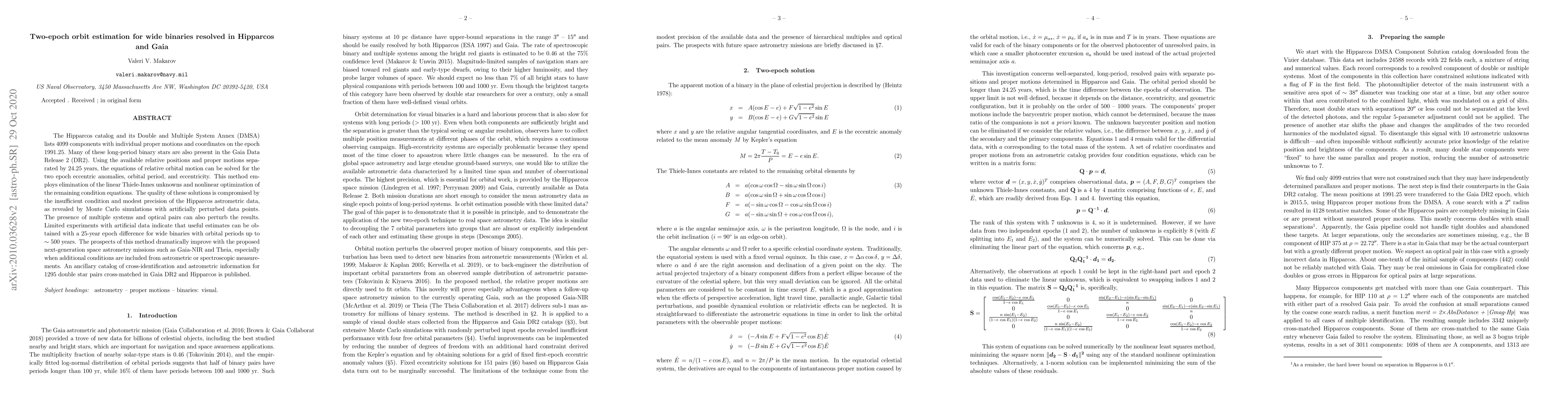 This paper presents a method for estimating the orbits of wide binary stars using data from the Hipparcos and Gaia catalogs, focusing on long-period binaries resolved over a 25-year interval. The method shows potential for obtaining useful orbit estimates for binaries with periods up to 500 years, though precision is limited by Hipparcos data quality. Future improvements are anticipated with next-generation astrometry missions.