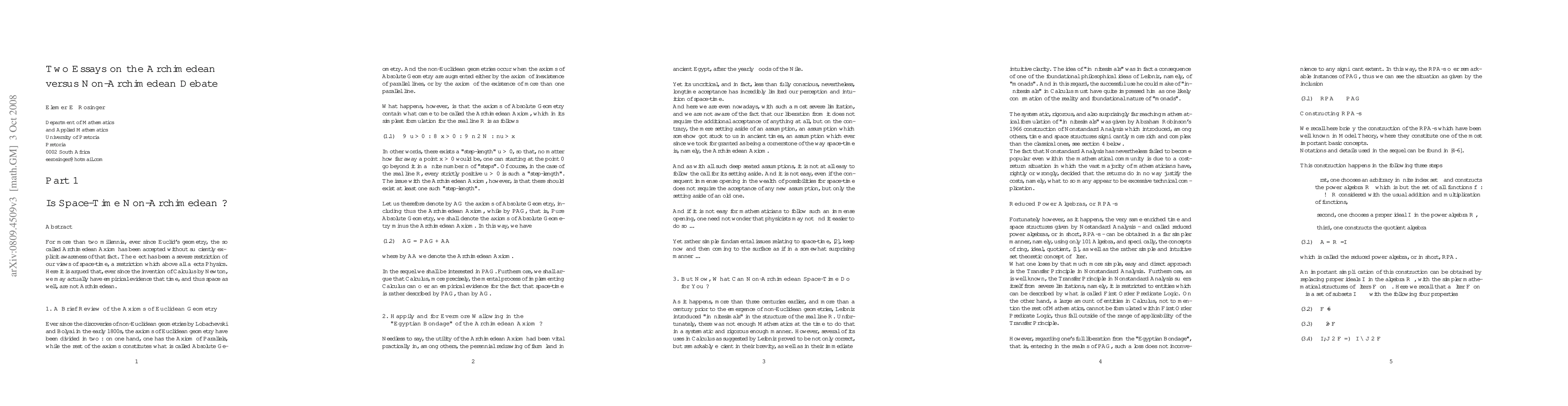Part 1 : For more than two millennia, ever since Euclid's geometry, the so called Archimedean Axiom has been accepted without sufficiently explicit awareness of that fact. The effect has been a severe restriction of our views of space-time, a restriction which above all affects Physics. Here it is argued that, ever since the invention of Calculus by Newton, we may actually have {\it empirical evidence} that time, and thus space as well, are not Archimedean. Part 2 : There is an insufficient awareness about the {\it rich and complex} structure of various totally ordered scalar fields obtained through the {\it ultrapower} construction. This rich and complex structure comes from the presence of {\it infinitesimals} in such fields, presence which leads to the fact that such fields are {\it non-Archimedean}. Here, with the concept of {\it walkable world}, which has highly intuitive and pragmatic geometric meaning, the mentioned rich and complex structure is illustrated. The issues presented have relevance for what are usually called the "infinities in physics".