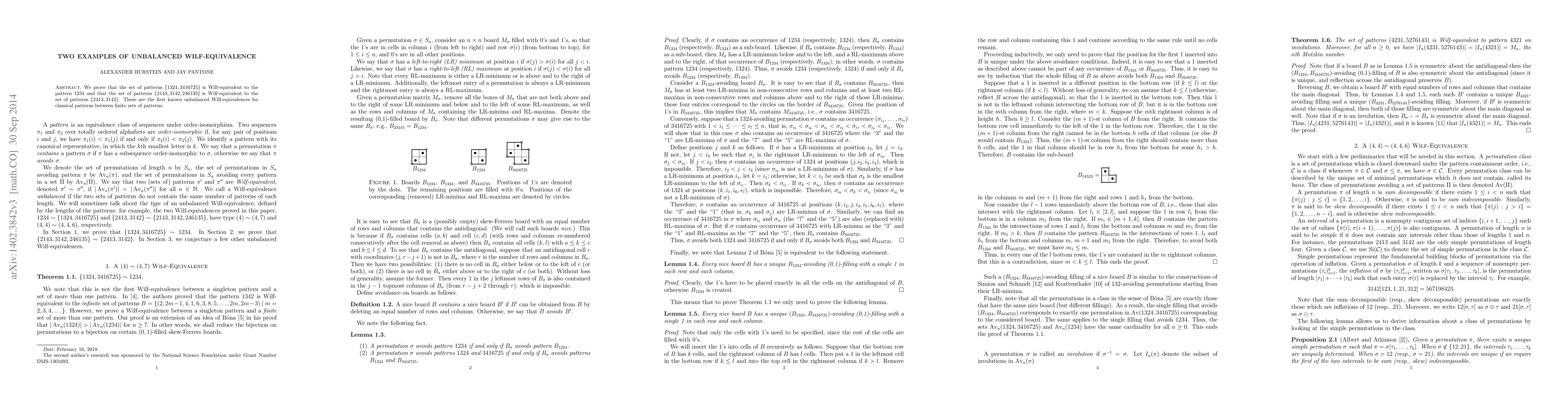 Researchers prove two new Wilf-equivalences between patterns, marking a significant finding in the study of classical patterns, demonstrating that some patterns can be equivalent despite having different numbers of elements.