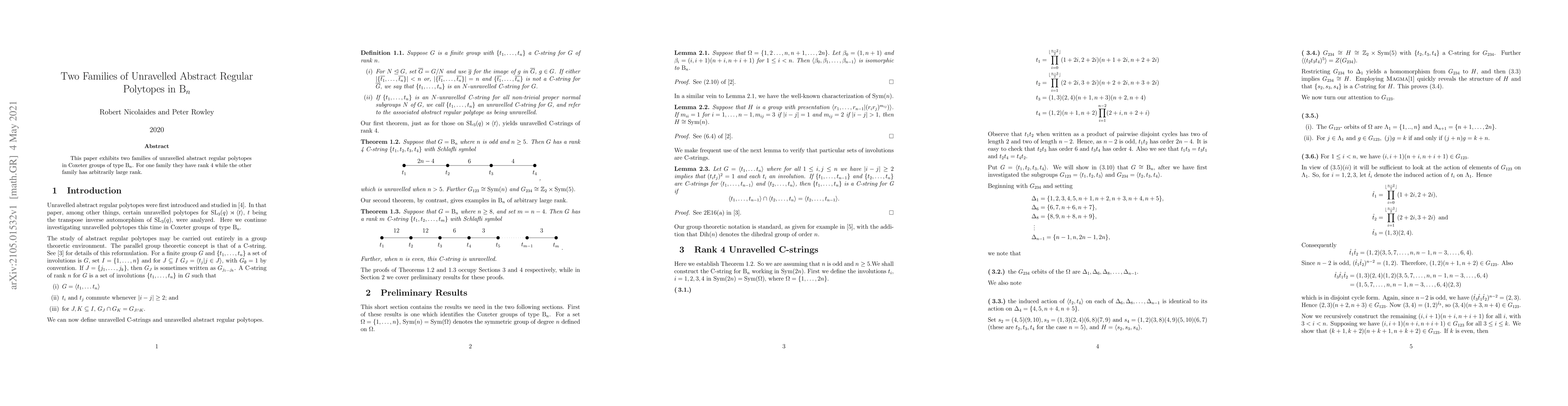 This paper exhibits two families of unravelled abstract regular polytopes in Coxeter groups of type Bn. For one family they have rank 4 while the other family has arbitrarily large rank.