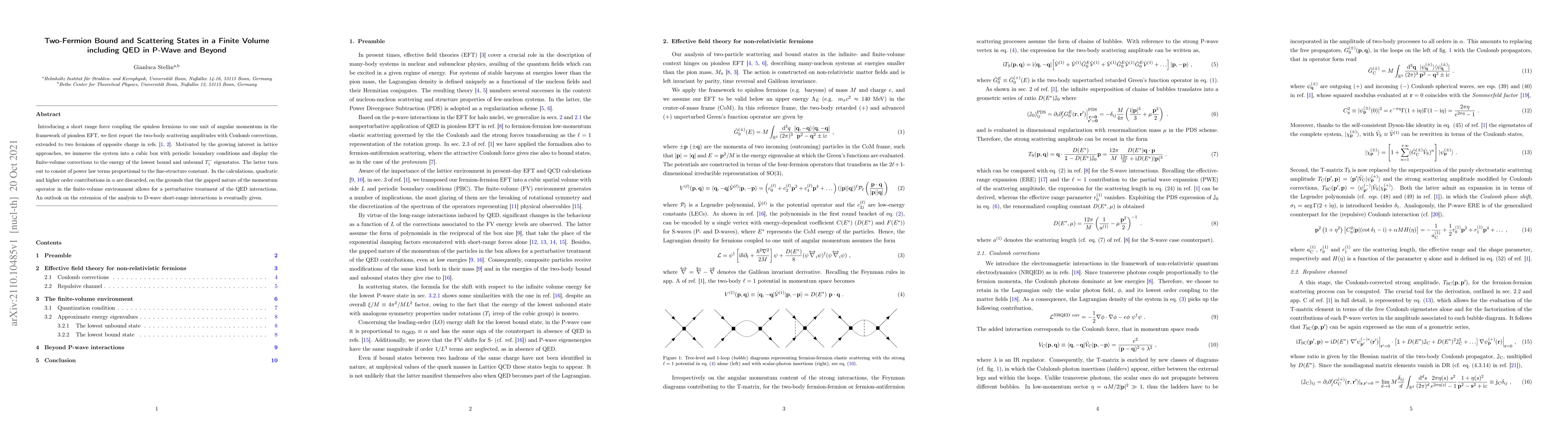 This paper explores two-fermion scattering and bound states in a finite volume, incorporating QED effects in pionless effective field theory. It reports scattering amplitudes with Coulomb corrections and finite-volume corrections to the lowest energy states, revealing power law terms proportional to the fine-structure constant.