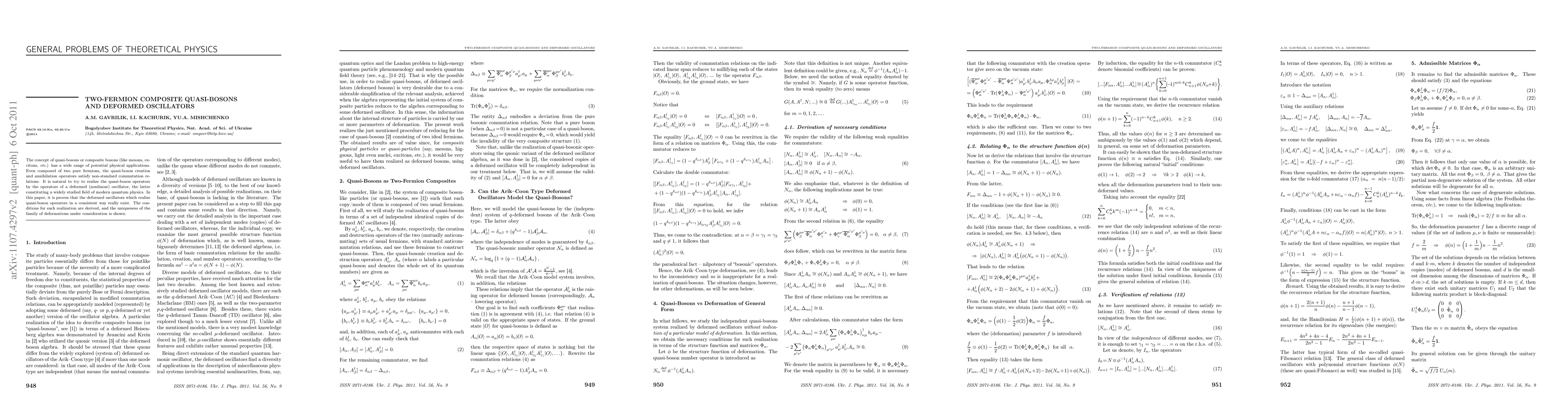 This paper proves the existence of deformed oscillators that realize quasi-boson operators, which are composite bosons formed from two fermions, satisfying non-standard commutation relations. It derives the conditions for such realization and demonstrates the uniqueness of the deformation family.
