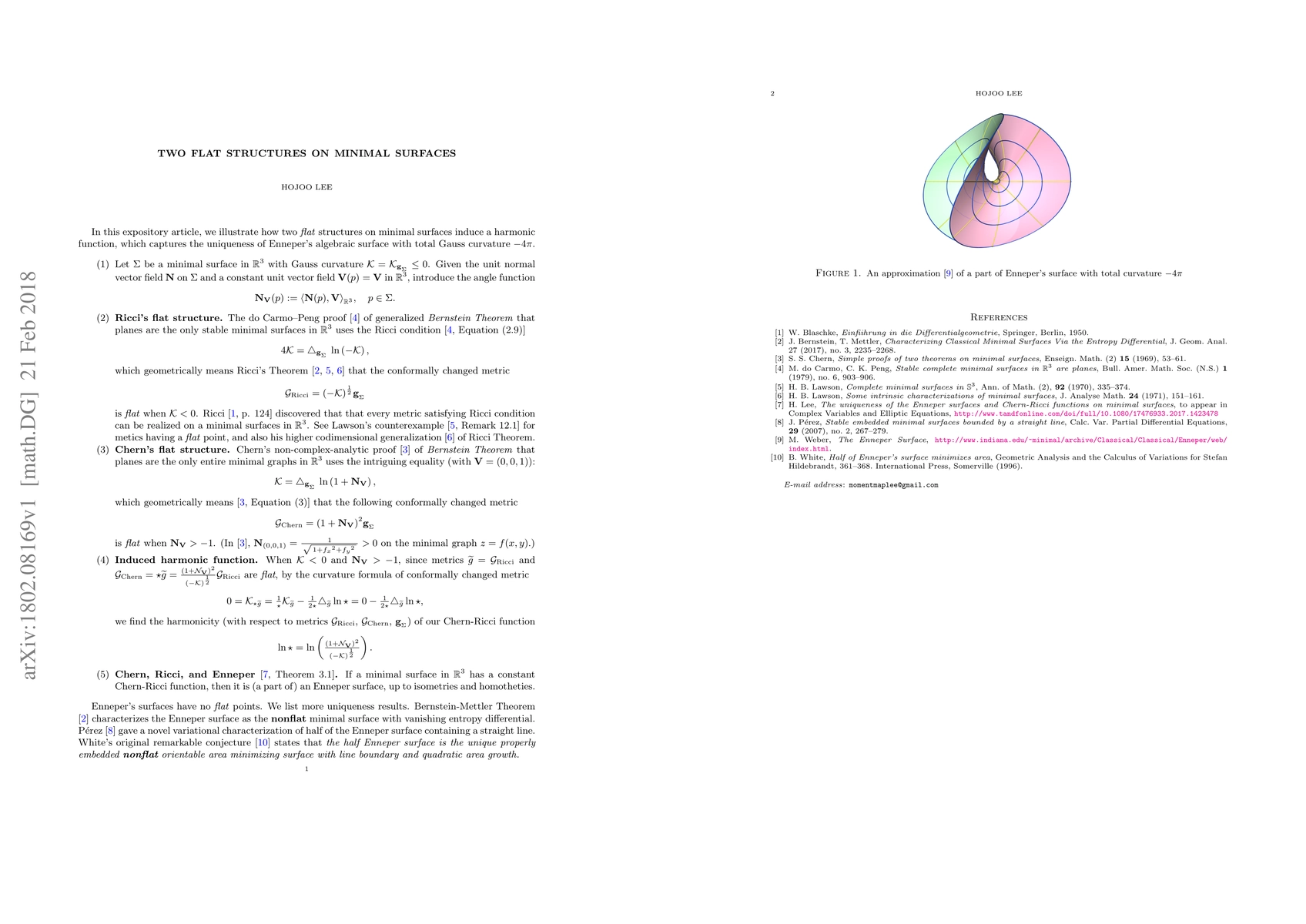This paper explores how two distinct flat structures on minimal surfaces generate a harmonic function, highlighting the uniqueness of Enneper's surface through this mathematical relationship.