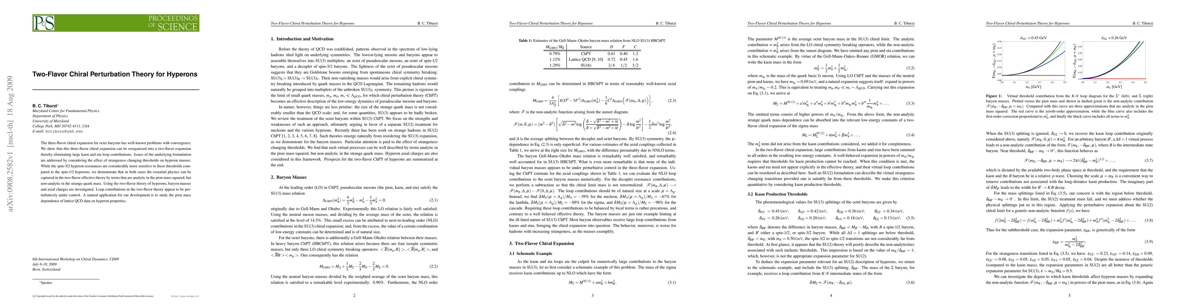 The three-flavor chiral expansion for octet baryons has well-known problems with convergence. We show that this three-flavor chiral expansion can be reorganized into a two-flavor expansion thereby eliminating large kaon and eta loop contributions. Issues of the underlying formulation are addressed by considering the effect of strangeness changing thresholds on hyperon masses. While the spin-3/2 hyperon resonances are considerably more sensitive to these thresholds compared to the spin-1/2 hyperons, we demonstrate that in both cases the essential physics can be captured in the two-flavor effective theory by terms that are analytic in the pion mass squared, but non-analytic in the strange quark mass. Using the two-flavor theory of hyperons, baryon masses and axial charges are investigated. Loop contributions in the two-flavor theory appear to be perturbatively under control. A natural application for our development is to study the pion mass dependence of lattice QCD data on hyperon properties.