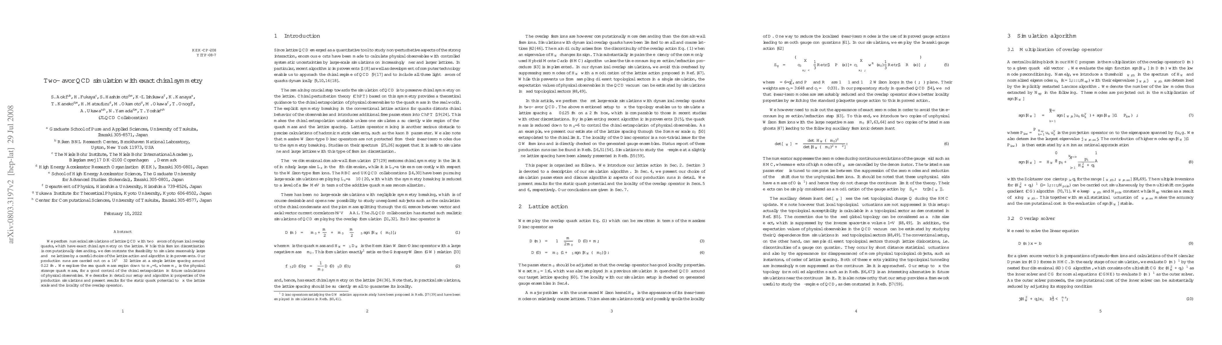 This study demonstrates a new method for simulating lattice QCD with two flavors of quarks that have exact chiral symmetry, enabling more precise calculations of physical observables. The researchers successfully simulated large lattices using this approach and presented results for the static quark potential and overlap operator.