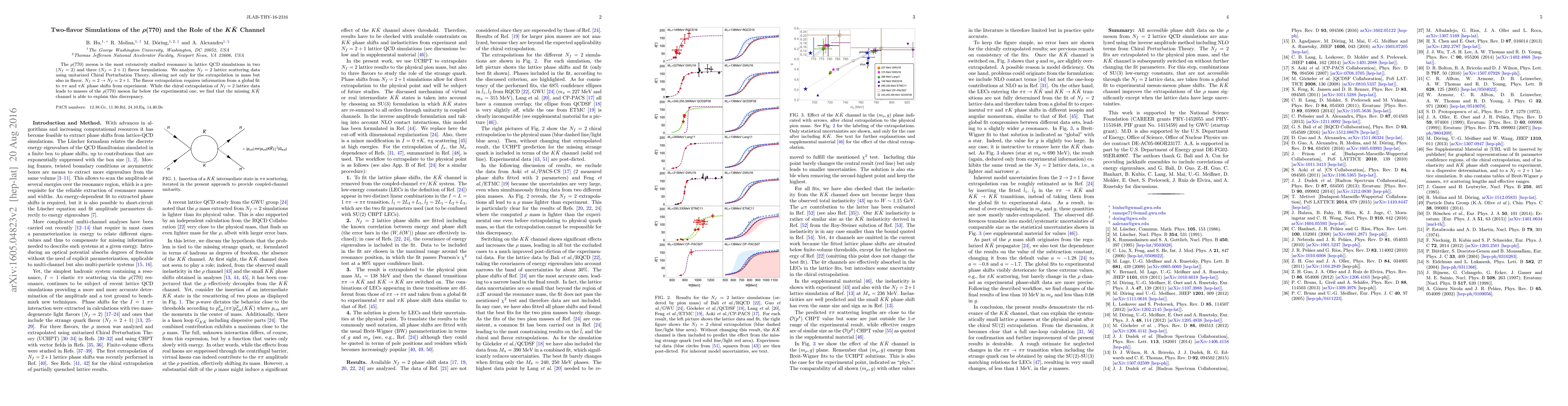 The $\rho (770)$ meson is the most extensively studied resonance in lattice QCD simulations in two ($N_f=2$) and three ($N_f=2+1$) flavor formulations. We analyze $N_f=2$ lattice scattering data using unitarized Chiral Perturbation Theory, allowing not only for the extrapolation in mass but also in flavor, $N_f=2\to N_f=2+1$. The flavor extrapolation requires information from a global fit to $\pi\pi$ and $\pi K$ phase shifts from experiment. While the chiral extrapolation of $N_f=2$ lattice data leads to masses of the $\rho(770)$ meson far below the experimental one, we find that the missing $K\bar{K}$ channel is able to explain this discrepancy.