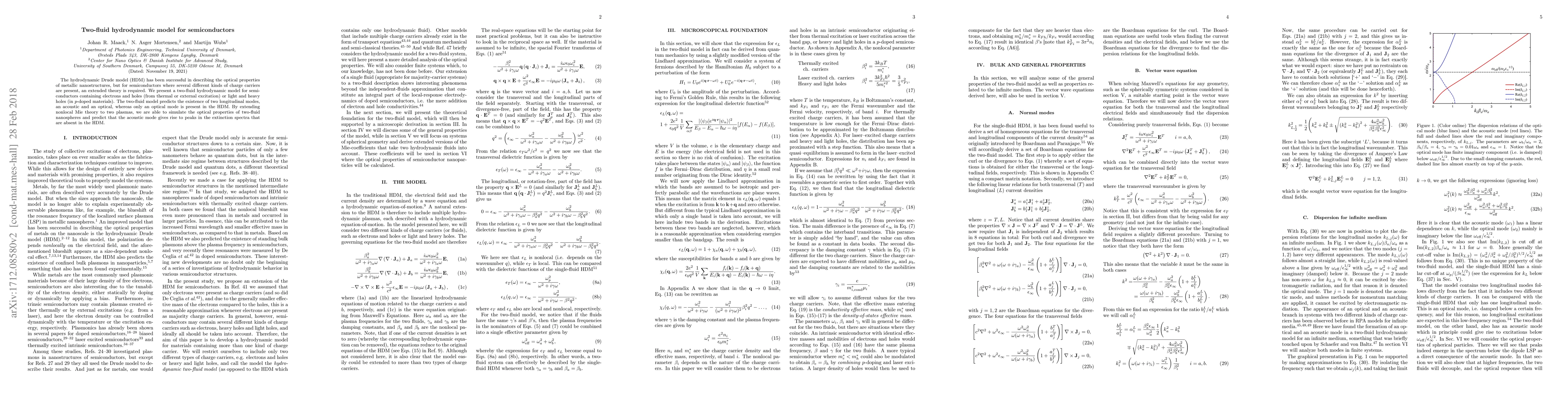 The paper presents a two-fluid hydrodynamic model for semiconductors, extending the hydrodynamic Drude model (HDM) to account for multiple charge carrier types such as electrons, holes, light holes, and heavy holes.