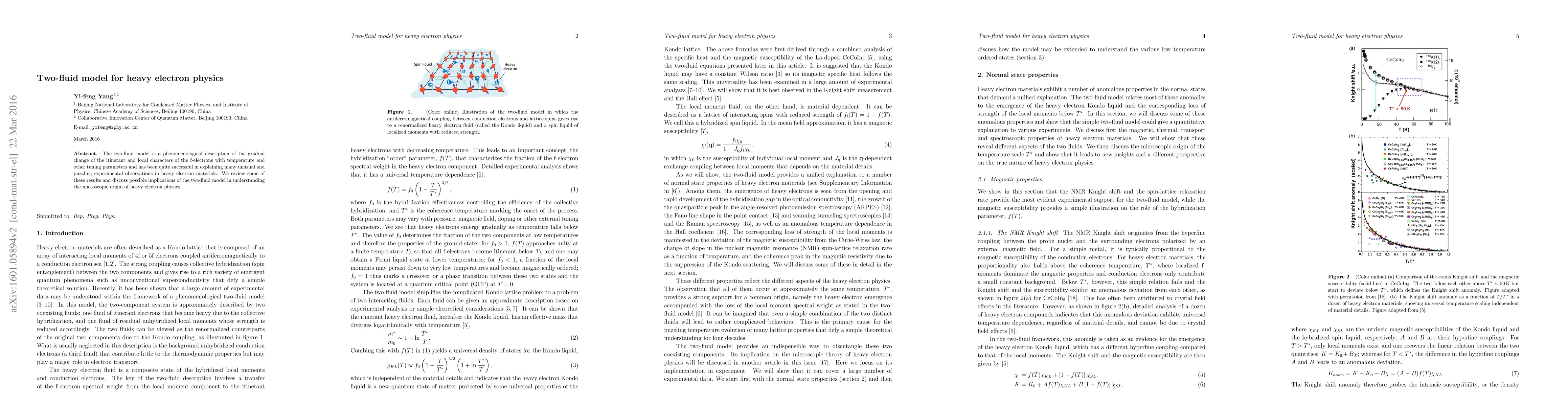 The two-fluid model is a phenomenological description of the gradual change of the itinerant and local characters of the f-electrons with temperature and other tuning parameters and has been quite successful in explaining many unusual and puzzling experimental observations in heavy electron materials. We review some of these results and discuss possible implications of the two-fluid model in understanding the microscopic origin of heavy electron physics.