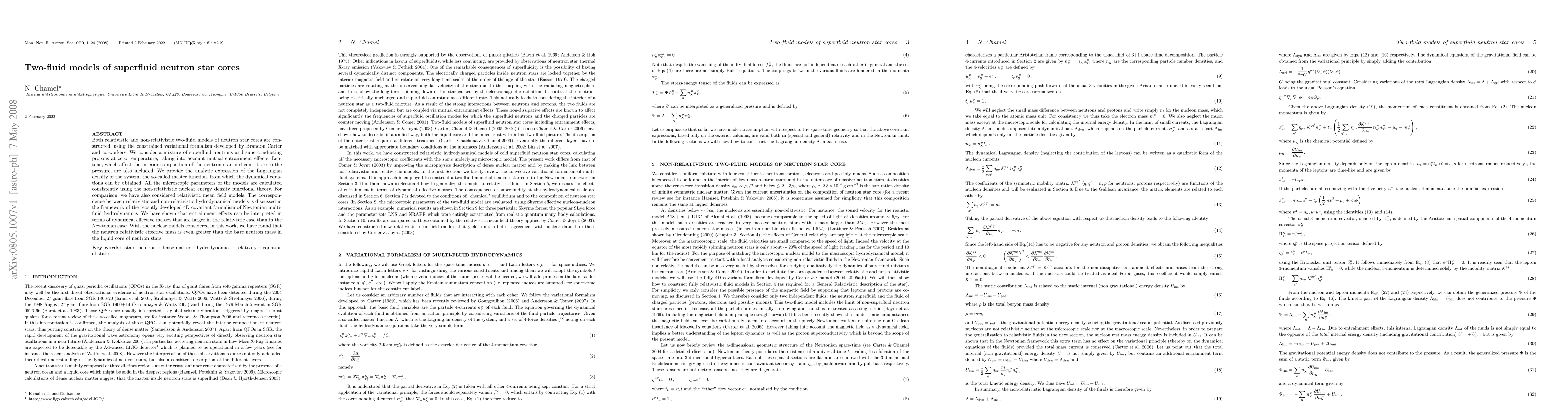 This paper constructs relativistic and non-relativistic two-fluid models for neutron star cores, incorporating superfluid neutrons and superconducting protons, and discusses the entrainment effects and effective masses. It compares the relativistic mean field models with non-relativistic nuclear energy density functional theory, highlighting differences in dynamical effective masses.