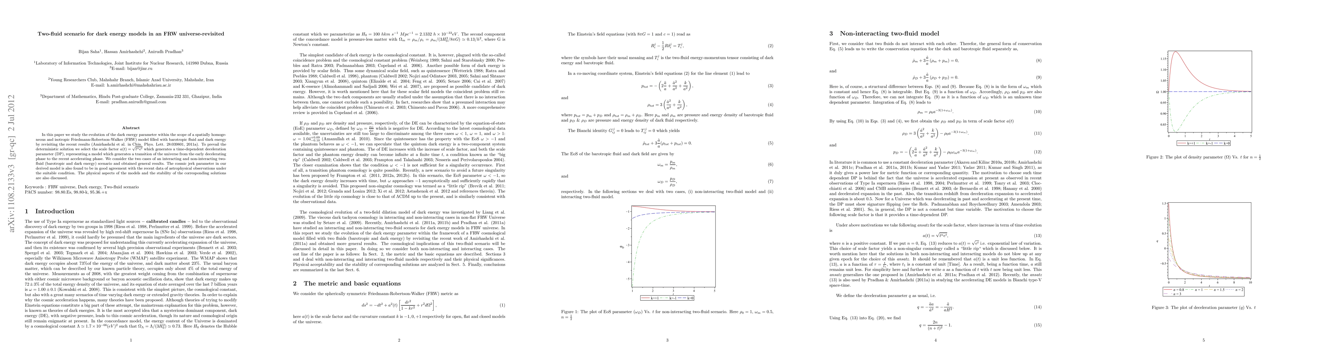 In this paper we study the evolution of the dark energy parameter within the scope of a spatially homogeneous and isotropic Friedmann-Robertson-Walker (FRW) model filled with barotropic fluid and dark energy by revisiting the recent results (Amirhashchi et al. in Chin. Phys. Lett. 28:039801, 2011a). To prevail the deterministic solution we select the scale factor $a(t) = \sqrt{t^{n}e^{t}}$ which generates a time-dependent deceleration parameter (DP), representing a model which generates a transition of the universe from the early decelerating phase to the recent accelerating phase. We consider the two cases of an interacting and non-interacting two-fluid (barotropic and dark energy) scenario and obtained general results. The cosmic jerk parameter in our derived model is also found to be in good agreement with the recent data of astrophysical observations under the suitable condition. The physical aspects of the models and the stability of the corresponding solutions are also discussed.