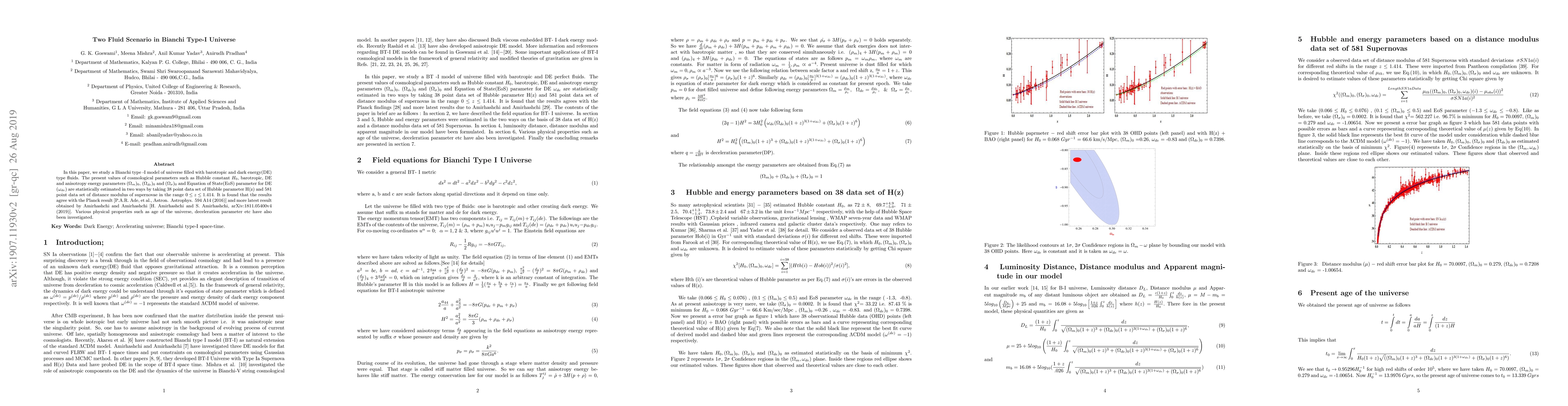 This paper studies a Bianchi type-I universe model with barotropic and dark energy fluids, estimating cosmological parameters from Hubble parameter and supernovae data to agree with Planck results.