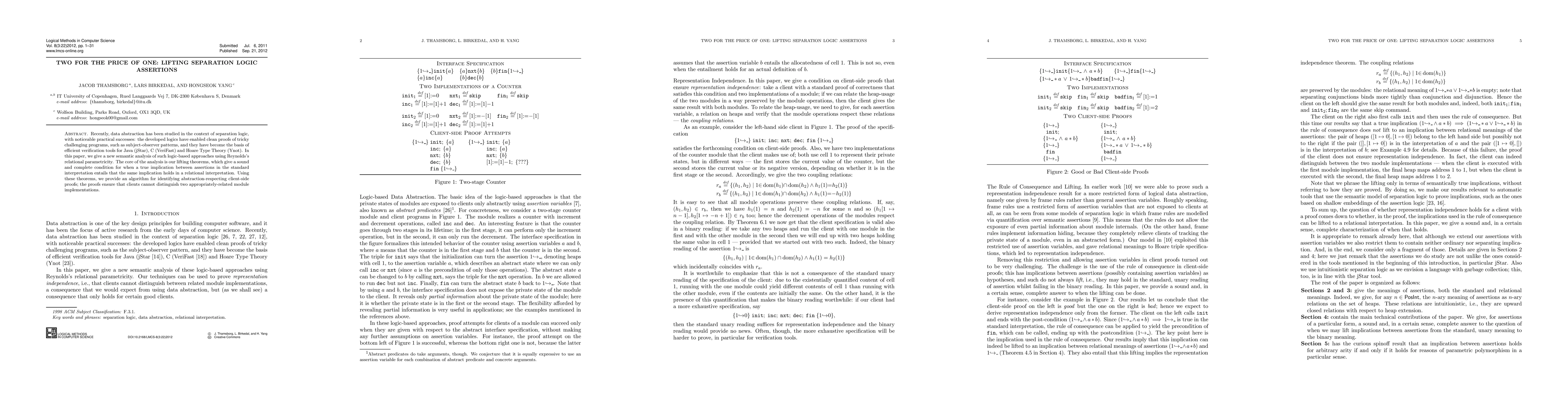 This paper presents a new semantic analysis of logic-based data abstraction in separation logic using relational parametricity, introducing lifting theorems that establish sound and complete conditions for implication between assertions. It also provides an algorithm for identifying client-side proofs that ensure clients cannot distinguish between two appropriately-related module implementations.
