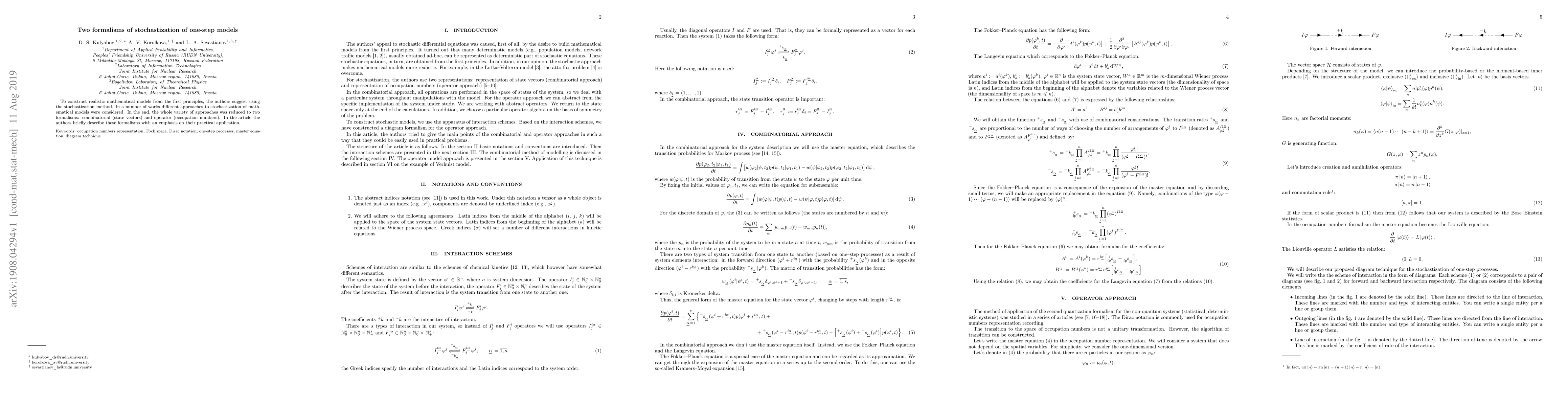 Researchers identified two formalisms for stochastization of one-step models: state vectors and occupation numbers, offering a simplified approach to constructing realistic mathematical models from first principles.