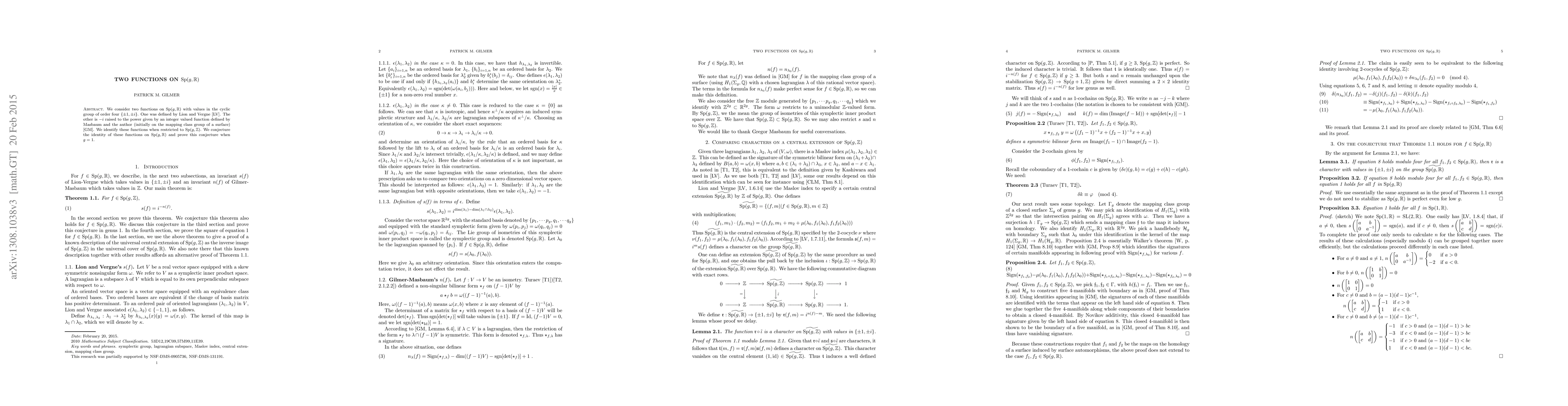 We consider two functions on Sp(g,R) with values in the cyclic group of order four {1,-1,i,-i}. One was defined by Lion and Vergne. The other is -i raised to the power given by an integer valued function defined by Masbaum and the author (initially on the mapping class group of a surface). We identify these functions when restricted to Sp(g,Z). We conjecture the identity of these functions on Sp(g,R).