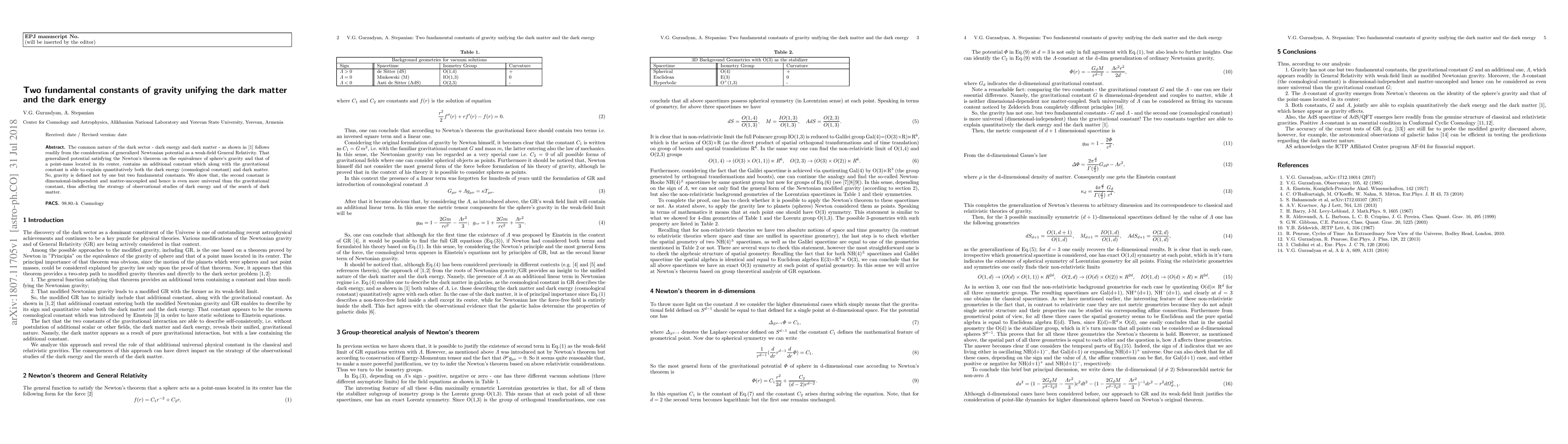 The common nature of the dark sector - dark energy and dark matter - as shown in [1] follows readily from the consideration of generalized Newtonian potential as a weak-field General Relativity. That generalized potential satisfying the Newton's theorem on the equivalence of sphere's gravity and that of a point-mass located in its center, contains an additional constant which along with the gravitational constant is able to explain quantitatively both the dark energy (cosmological constant) and dark matter. So, gravity is defined not by one but two fundamental constants. We show that, the second constant is dimensional-independent and matter-uncoupled and hence is even more universal than the gravitational constant, thus affecting the strategy of observational studies of dark energy and of the search of dark matter.