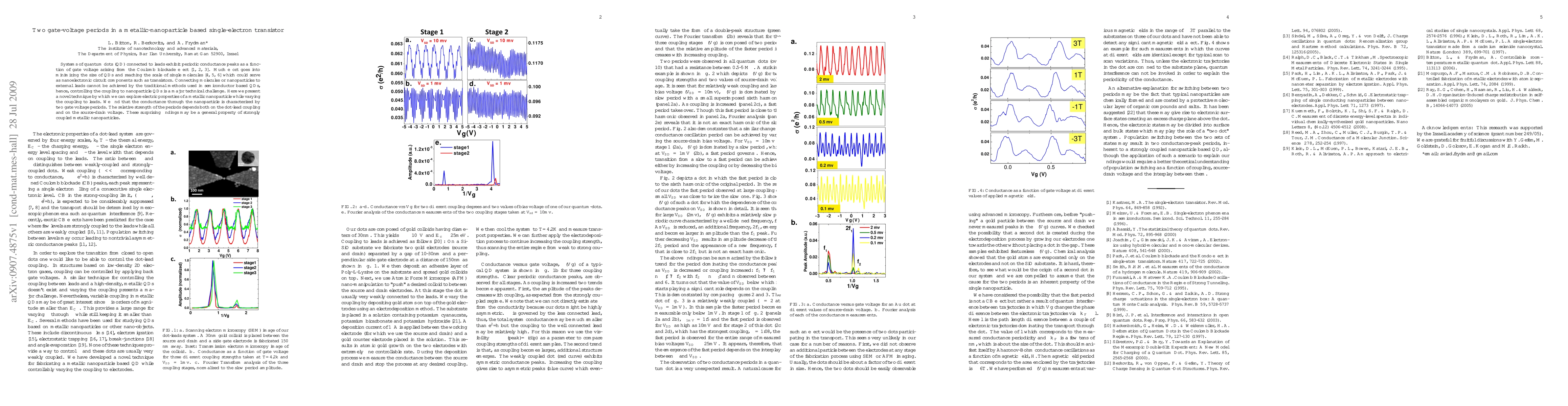 Systems of quantum dots (QD) connected to leads exhibit periodic conductance peaks as a function of gate voltage arising from the Coulomb blockade effect \cite{review1,review2,review3}. Much effort goes into minimizing the size of QDs and reaching the scale of single molecules \cite{molecular1,molecular2,molecular3} which could serve as nanoelectronic circuit components such as transistors. Connecting molecules or nanoparticles to external leads cannot be achieved by the traditional methods used in semiconductor based QDs, hence, controlling the coupling to nanoparticle QDs is a major technical challenge. Here we present a novel technique by which we can explore electric properties of a metallic nanoparticle while varying the coupling to leads. We find that the conductance through the nanoparticle is characterized by \emph{two} gate voltage periods. The relative strength of the periods depends both on the dot-lead coupling and on the source-drain voltage. These surprising findings may be a general property of strongly coupled metallic nanoparticles.