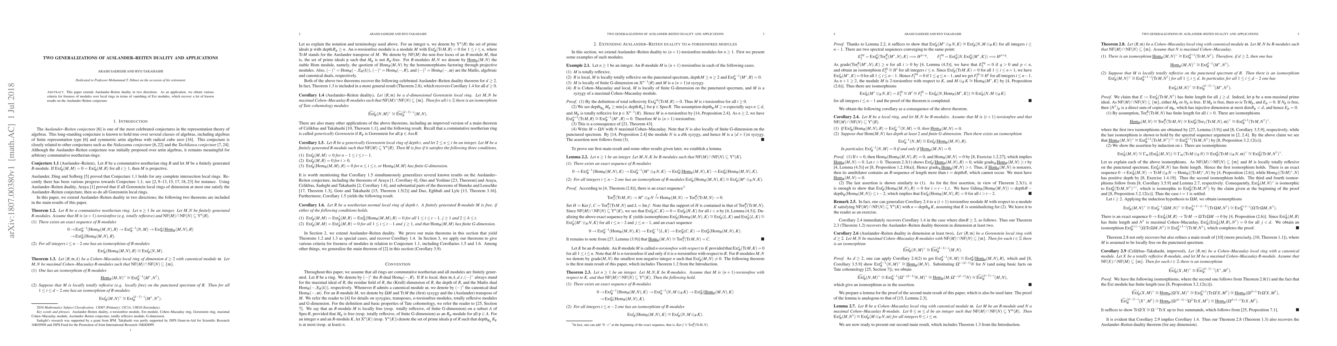 This paper generalizes Auslander-Reiten duality in two directions and applies the results to establish criteria for module freeness over local rings based on Ext module vanishing, recovering significant findings related to the Auslander-Reiten conjecture.