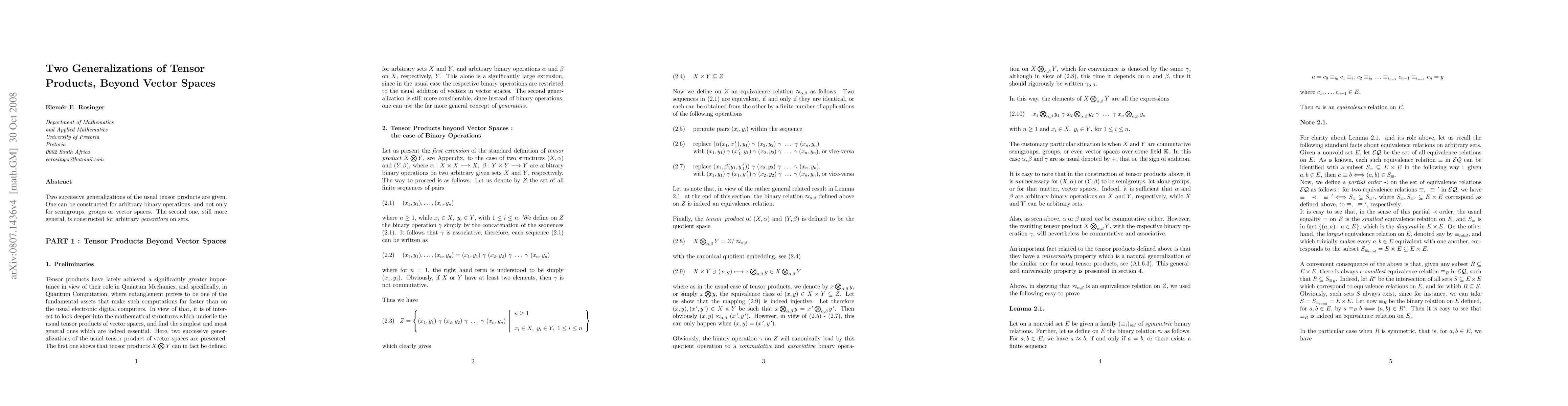 This paper presents two generalizations of tensor products, extending beyond vector spaces. The first generalizes tensor products for arbitrary binary operations, while the second extends the concept to arbitrary generators on sets.