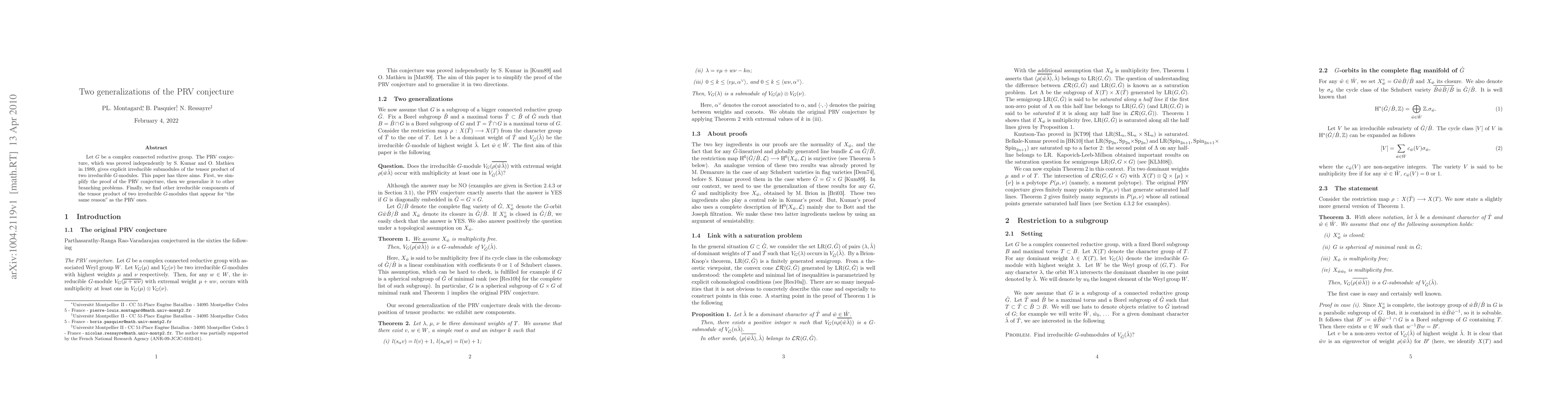 Researchers simplified the proof of the PRV conjecture, generalized it to other branching problems, and discovered additional irreducible components of tensor product modules in a connected reductive group.