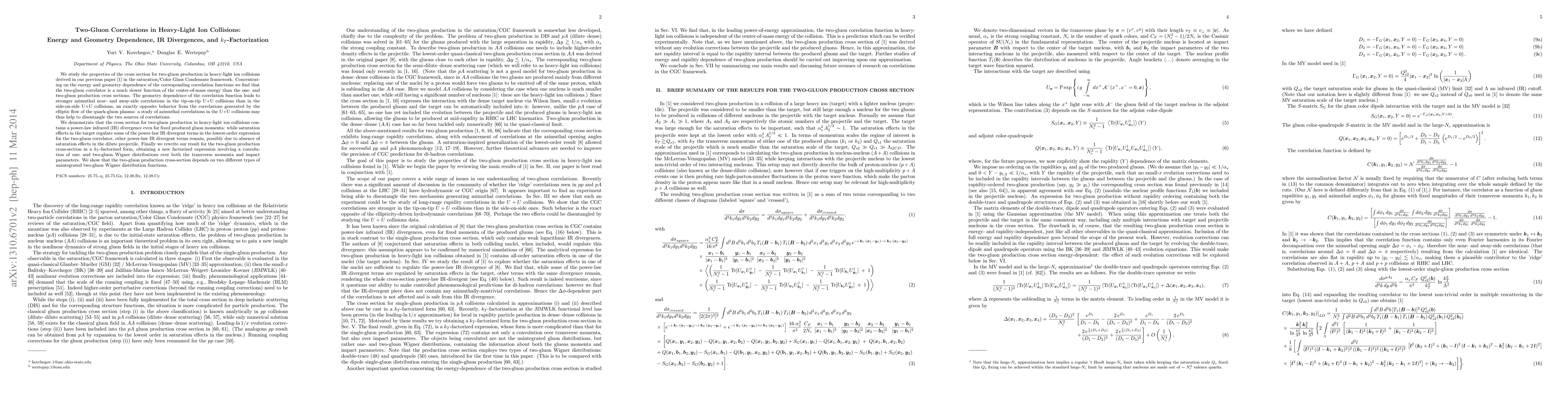This paper explores two-gluon production cross sections in heavy-light ion collisions, revealing slower energy dependence compared to single and two-gluon cross sections. It highlights geometry-dependent azimuthal correlations and IR divergences, proposing a $k_T$-factorized form for the cross section involving unintegrated two-gluon Wigner distributions.