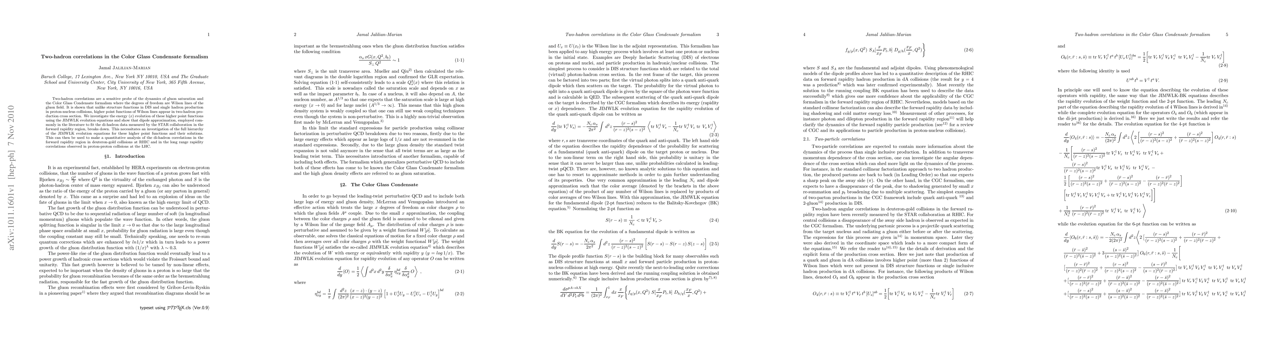 This paper investigates two-hadron correlations as a probe of gluon saturation within the Color Glass Condensate formalism, revealing that higher point functions of Wilson lines influence the two-hadron production cross section. It demonstrates that the dipole approximation fails and necessitates a full analysis of JIMWLK evolution equations for accurate quantitative predictions of di-hadron correlations in high-energy collisions.