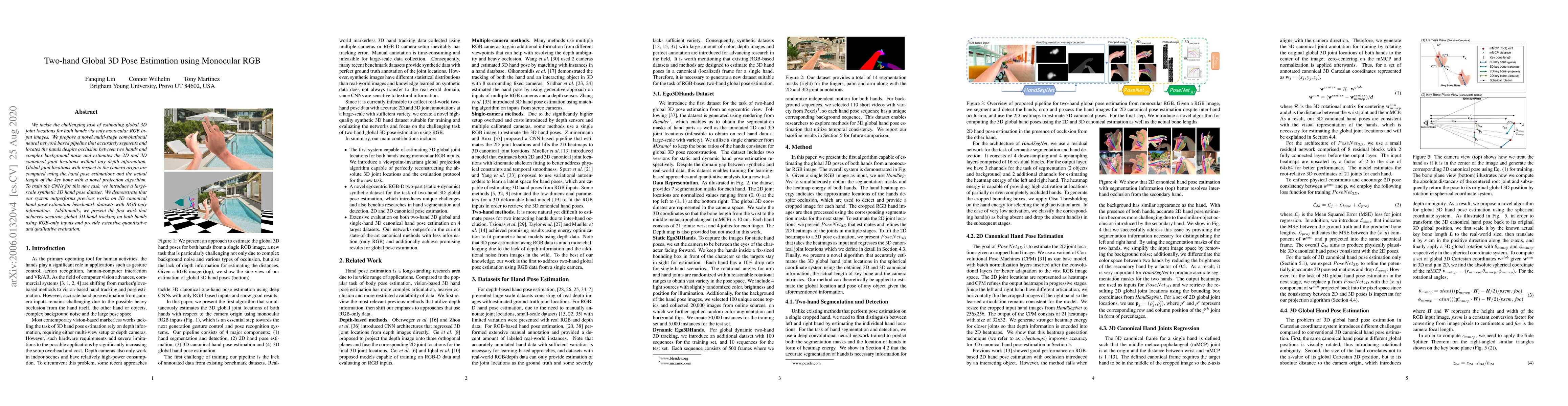 This research is significant as it addresses the challenging task of estimating global 3D joint locations for both hands using only monocular RGB input images, which is crucial for applications in computer vision, augmented reality, and robotics.