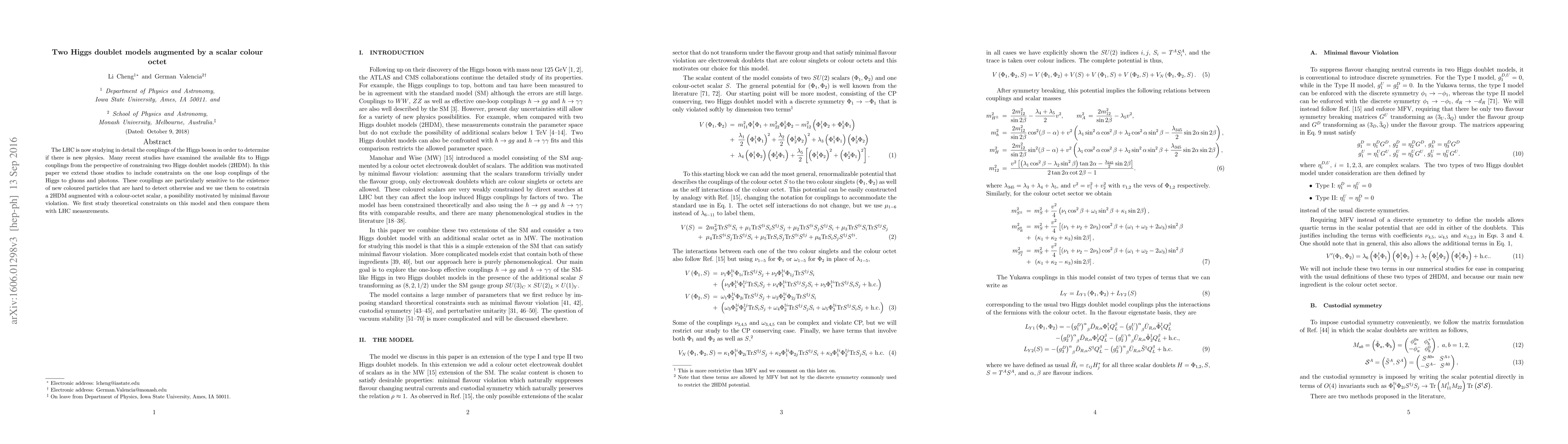 The LHC is now studying in detail the couplings of the Higgs boson in order to determine if there is new physics. Many recent studies have examined the available fits to Higgs couplings from the perspective of constraining two Higgs doublet models (2HDM). In this paper we extend those studies to include constraints on the one loop couplings of the Higgs to gluons and photons. These couplings are particularly sensitive to the existence of new colored particles that are hard to detect otherwise and we use them to constrain a 2HDM augmented with a color-octet scalar, a possibility motivated by minimal flavor violation. We first study theoretical constraints on this model and then compare them with LHC measurements.