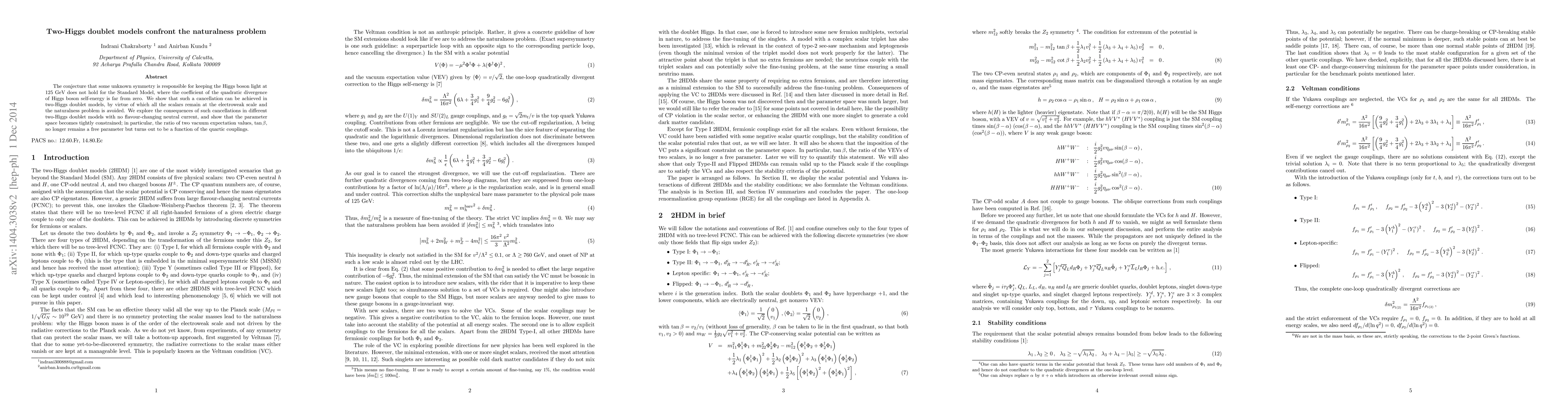 This paper demonstrates that two-Higgs doublet models can resolve the naturalness problem in the Standard Model by achieving cancellations in Higgs boson self-energy, keeping scalars at the electroweak scale. It explores the consequences of these cancellations, showing that the parameter space is tightly constrained, particularly affecting the $\tan\beta$ ratio.