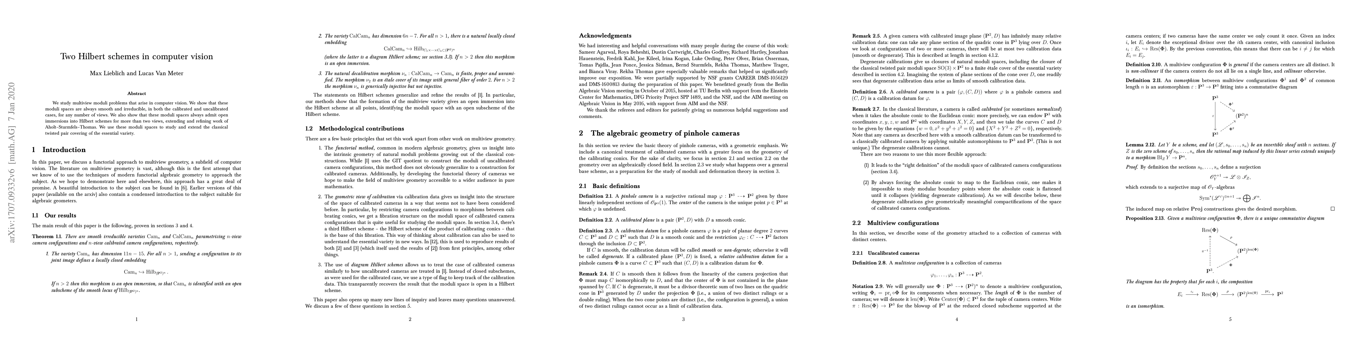 This paper explores the smooth and irreducible nature of multiview moduli spaces in computer vision, showing they can be embedded into Hilbert schemes for more than two views, thus extending prior work, and applies these insights to the classical twisted pair covering of the essential variety.