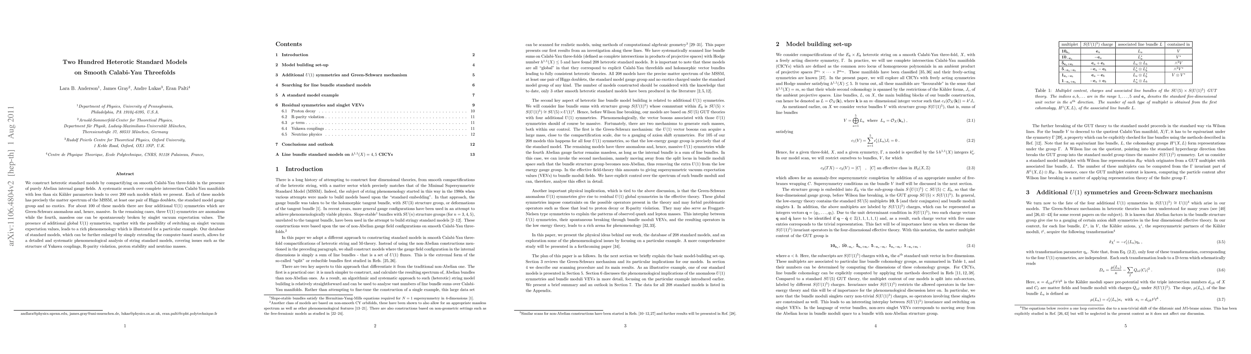 This paper constructs over 200 heterotic standard models via compactification on smooth Calabi-Yau threefolds, yielding models with the MSSM matter spectrum and gauge group, alongside potential additional U(1) symmetries. The database enables systematic phenomenological analysis, including R-parity violation and neutrino masses.