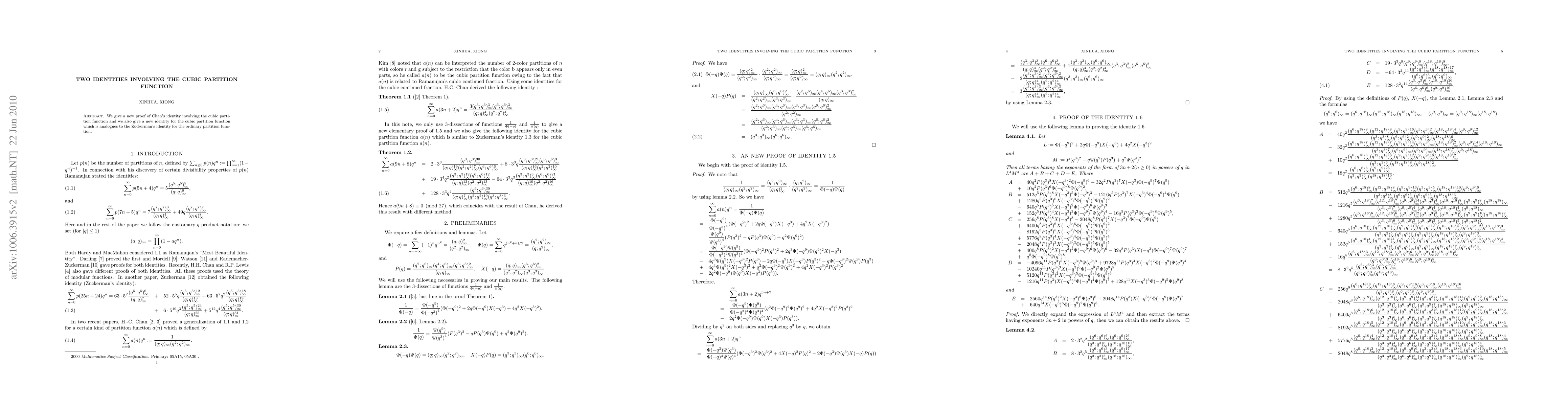 Summary: This paper presents a novel proof of Chan's identity concerning the cubic partition function and introduces a new identity analogous to Zuckerman's identity for the ordinary partition function.