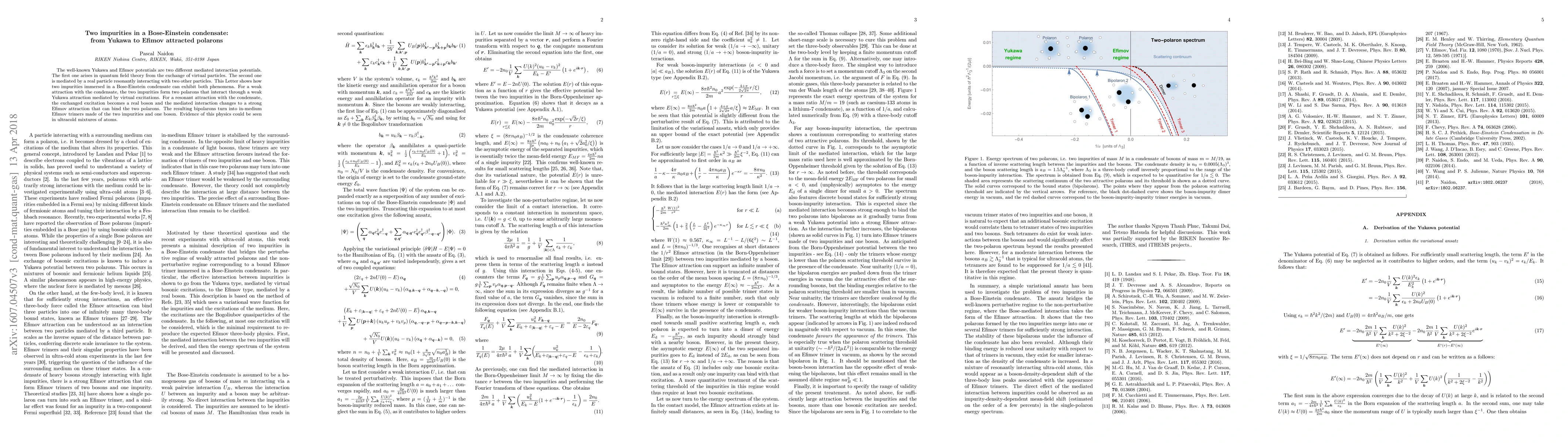 The well-known Yukawa and Efimov potentials are two different mediated interaction potentials. The first one arises in quantum field theory from the exchange of virtual particles. The second one is mediated by a real particle resonantly interacting with two other particles. This Letter shows how two impurities immersed in a Bose-Einstein condensate can exhibit both phenomena. For a weak impurity-boson attractive interactionattraction with the condensate, the two impurities form two polarons that interact through a weak Yukawa attraction mediated by virtual excitations. For a resonant attraction with the condensate, the exchanged excitation becomes a real boson and the mediated interaction changes to a strong Efimov attraction that can bind the two polarons. The resulting bipolarons turn into in-medium Efimov trimers made of the two impurities and one boson. Evidence of this physics could be seen in ultracold mixtures of atoms.