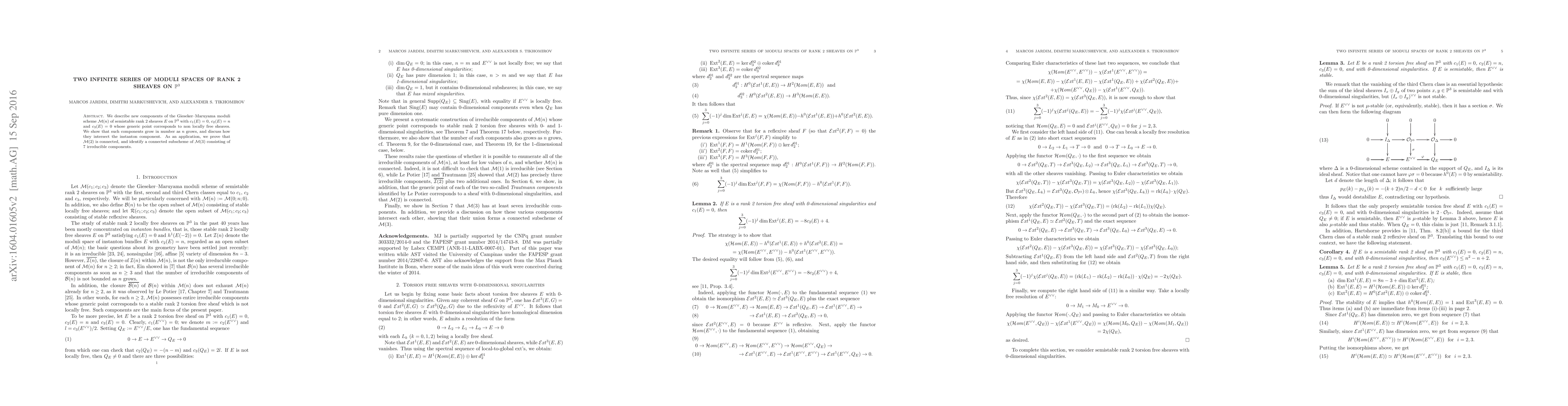 We describe new components of the Gieseker--Maruyama moduli scheme $\mathcal{M}(n)$ of semistable rank 2 sheaves $E$ on $\mathbb{P}^3$ with $c_1(E)=0$, $c_2(E)=n$ and $c_3(E)=0$ whose generic point corresponds to non locally free sheaves. We show that such components grow in number as $n$ grows, and discuss how they intersect the instanton component. As an application, we prove that $\mathcal{M}(2)$ is connected, and identify a connected subscheme of $\mathcal{M}(3)$ consisting of 7 irreducible components.