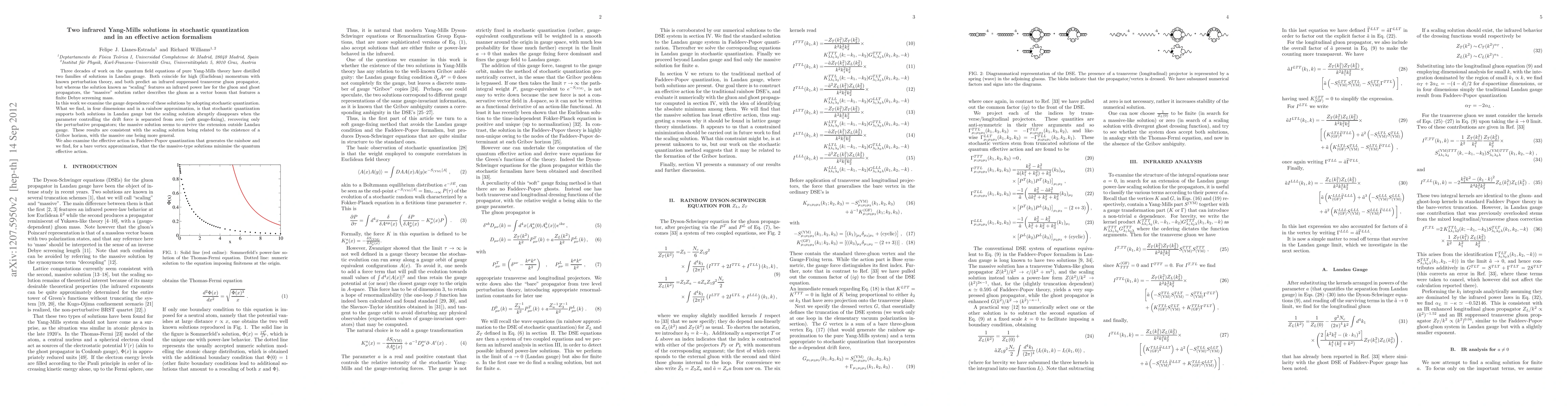 Three decades of work on the quantum field equations of pure Yang-Mills theory have distilled two families of solutions in Landau gauge. Both coincide for high (Euclidean) momentum with known perturbation theory, and both predict an infrared suppressed transverse gluon propagator, but whereas the solution known as "scaling" features an infrared power law for the gluon and ghost propagators, the "massive" solution rather describes the gluon as a vector boson that features a finite Debye screening mass. In this work we examine the gauge dependence of these solutions by adopting stochastic quantization. What we find, in four dimensions and in a rainbow approximation, is that stochastic quantization supports both solutions in Landau gauge but the scaling solution abruptly disappears when the parameter controlling the drift force is separated from zero (soft gauge-fixing), recovering only the perturbative propagators; the massive solution seems to survive the extension outside Landau gauge. These results are consistent with the scaling solution being related to the existence of a Gribov horizon, with the massive one being more general. We also examine the effective action in Faddeev-Popov quantization that generates the rainbow and we find, for a bare vertex approximation, that the the massive-type solutions minimise the quantum effective action.