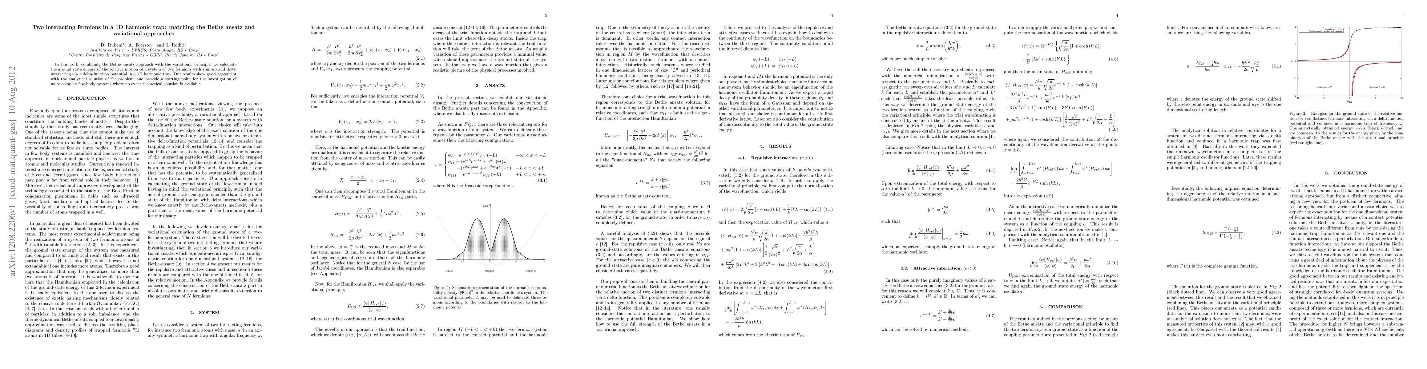 This paper combines Bethe ansatz and variational methods to determine the ground state energy of two interacting fermions in a 1D harmonic trap, showing agreement with analytical solutions and laying groundwork for studying more complex few-body systems.