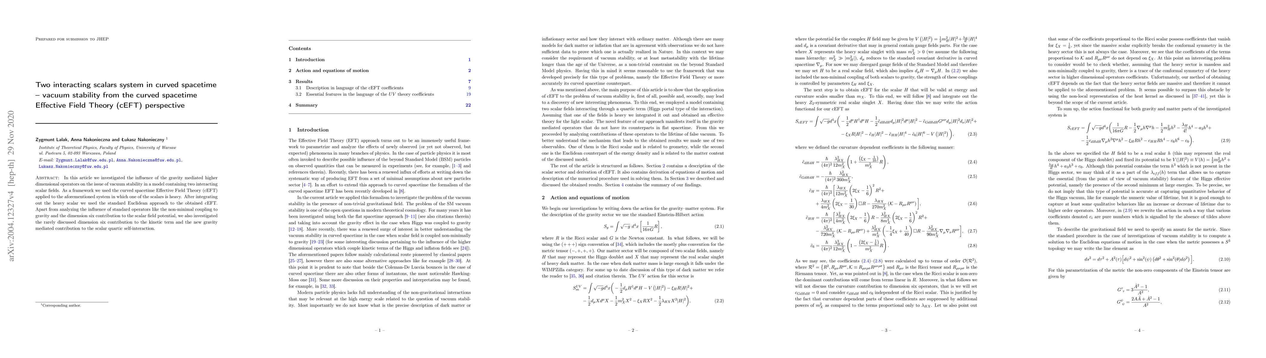 This paper explores vacuum stability in a two-scalar field system in curved spacetime using the curved spacetime Effective Field Theory (cEFT). It investigates the effects of higher-dimensional gravity-induced operators, including non-minimal couplings, dimension six contributions to the potential and kinetic terms, and new quartic self-interactions.