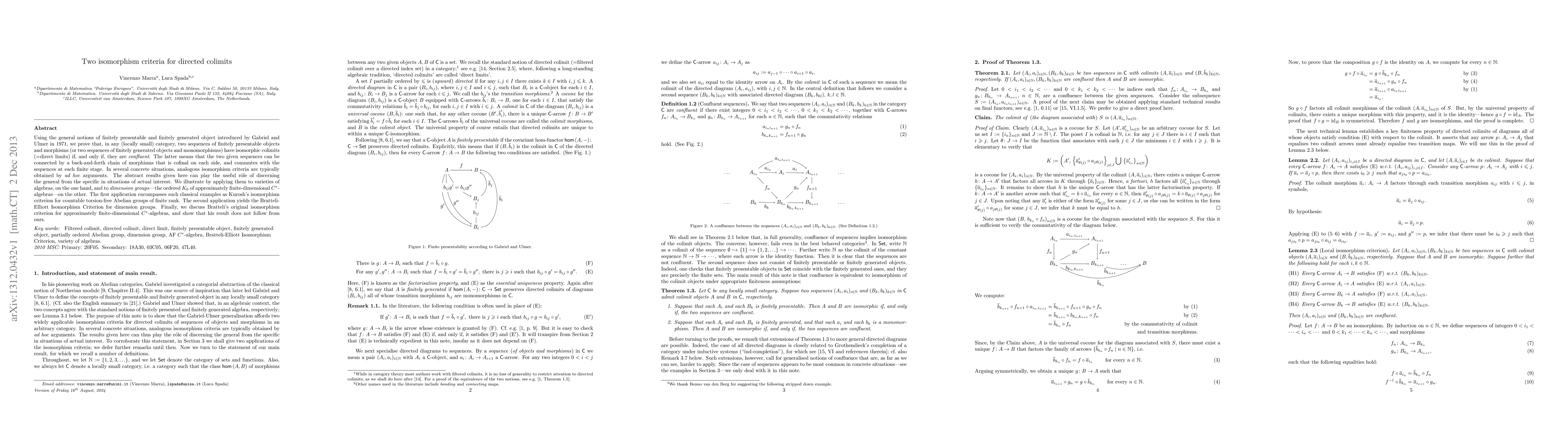 Researchers prove that two sequences of finitely presentable objects in a category have isomorphic colimits if and only if they are confluent, providing a general framework for discerning specific from general results.