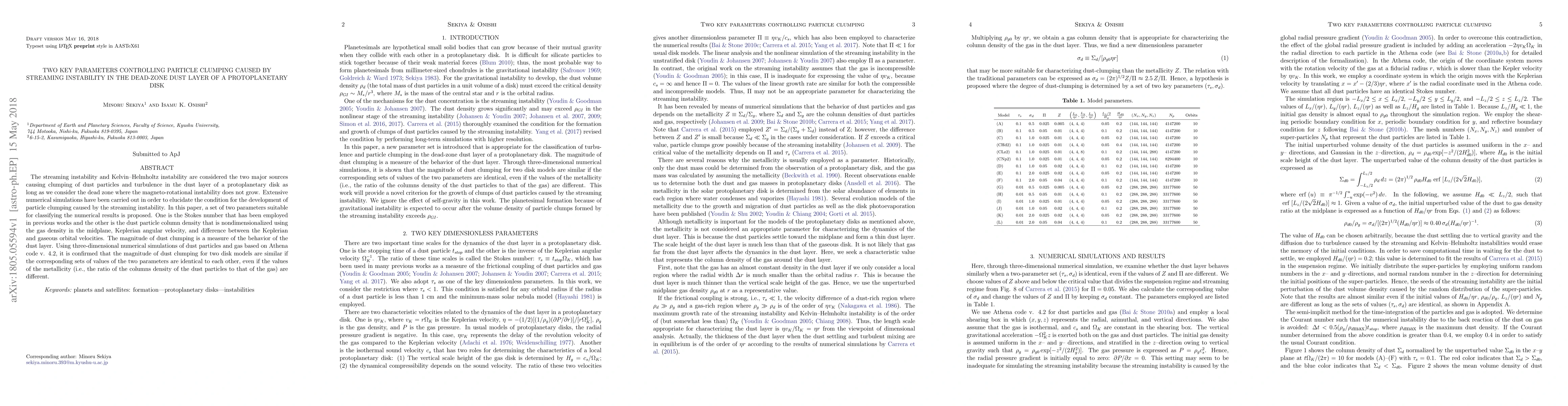 This paper proposes two key parameters—the Stokes number and nondimensionalized dust particle column density—to classify particle clumping due to streaming instability in the dead-zone dust layer of protoplanetary disks. Numerical simulations confirm that dust clumping magnitude is consistent across different disk models when the parameter values are identical, regardless of varying metallicity.
