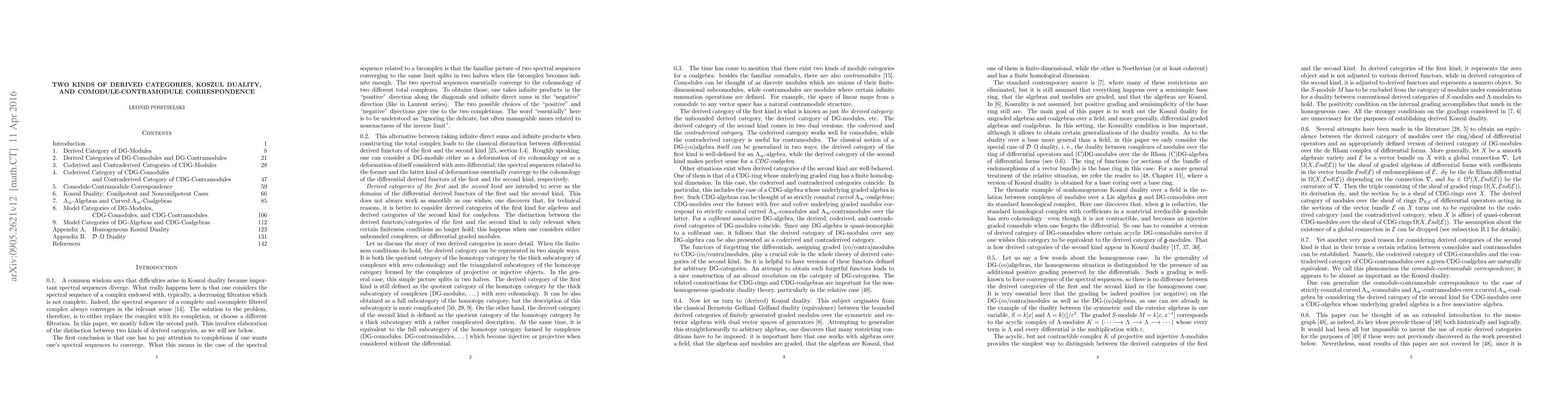 This paper introduces derived categories of DG-modules and comodules, establishes the comodule-contramodule correspondence, and explores nonhomogeneous Koszul duality, including both conilpotent and nonconilpotent versions, alongside various $A_\infty$-structures and model category structures.