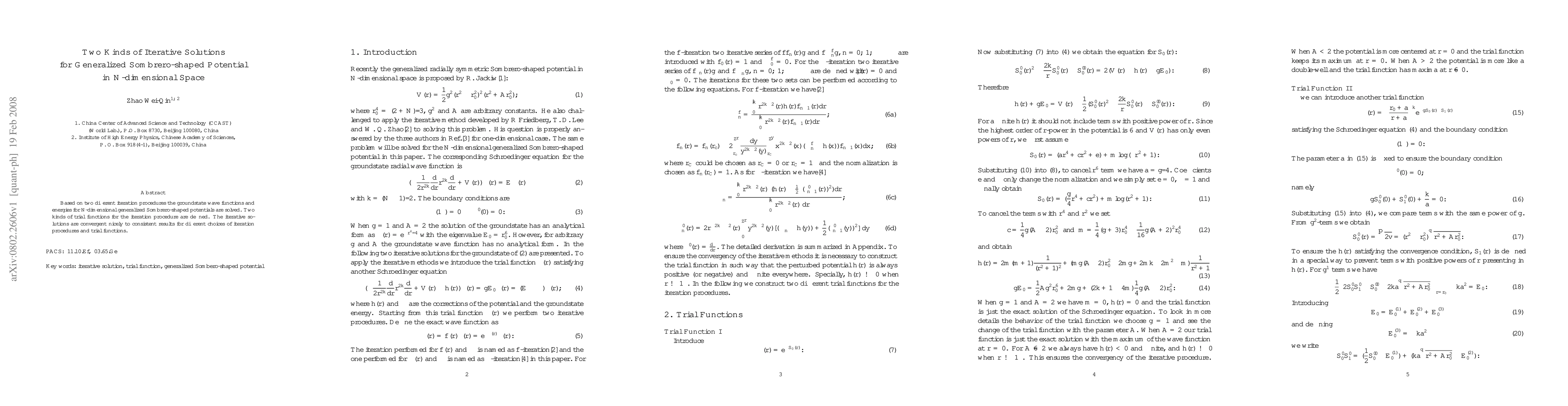 Based on two different iteration procedures the groundstate wave functions and energies for N-dimensional generalized Sombrero-shaped potentials are solved. Two kinds of trial functions for the iteration procedure are defined. The iterative solutions are convergent nicely to consistent results for different choices of iteration procedures and trial functions.