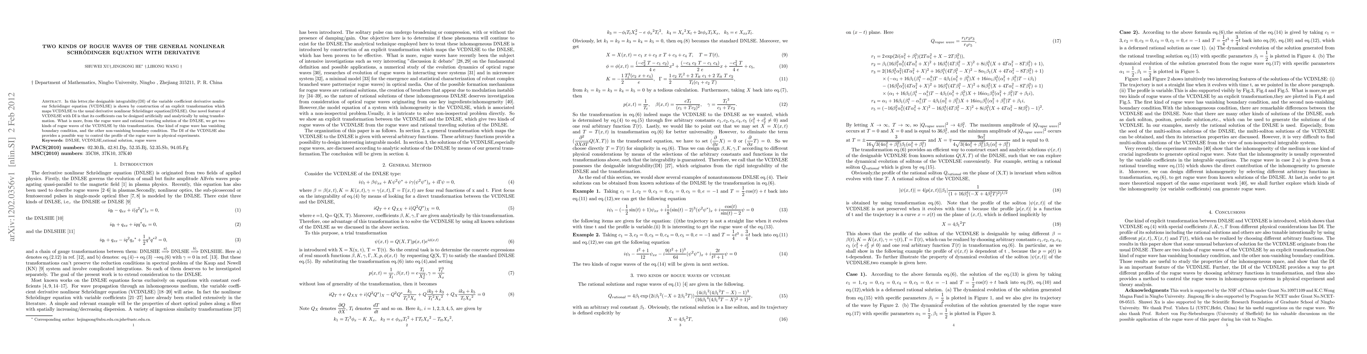 In this letter,the designable integrability(DI) of the variable coefficient derivative nonlinear Schr\"odinger equation (VCDNLSE) is shown by construction of an explicit transformation which maps VCDNLSE to the usual derivative nonlinear Schr\"odinger equation(DNLSE). One novel feature of VCDNLSE with DI is that its coefficients can be designed artificially and analytically by using transformation. What is more, from the rogue wave and rational traveling solution of the DNLSE, we get two kinds of rogue waves of the VCDNLSE by this transformation. One kind of rogue wave has vanishing boundary condition, and the other non-vanishing boundary condition. The DI of the VCDNLSE also provides a possible way to control the profile of the rogue wave in physical experiments.