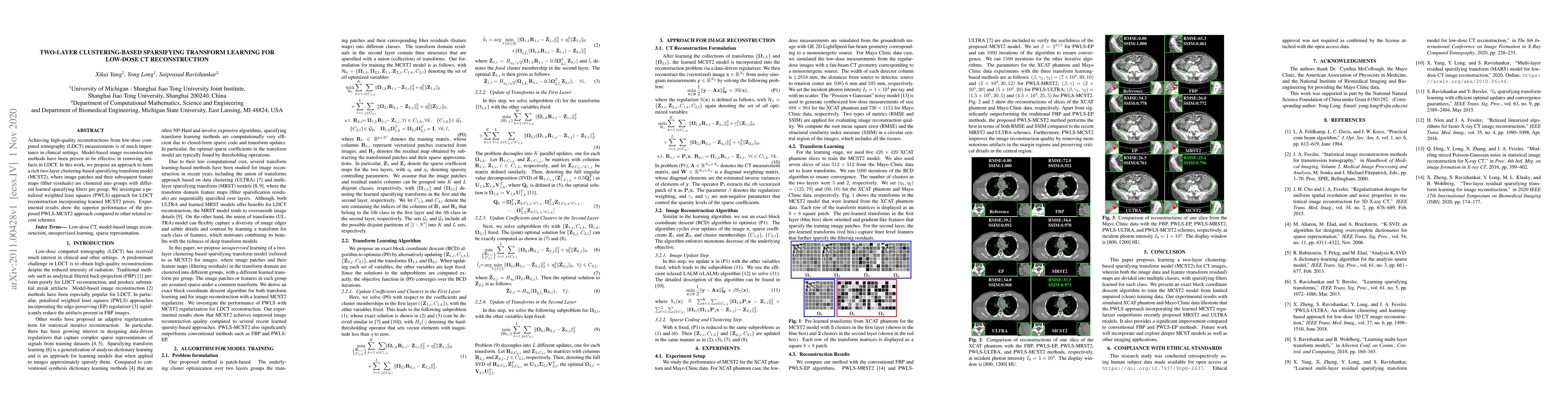 The development of a novel two-layer clustering-based sparsifying transform model (MCST2) that leverages the power of clustering to improve low-dose CT image reconstruction quality.
