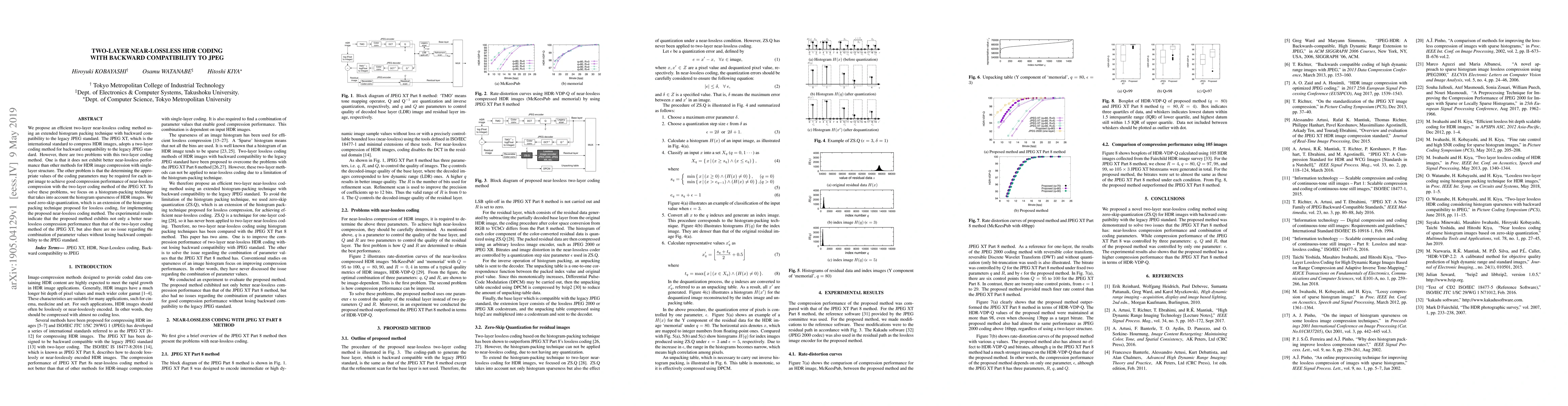 We propose an efficient two-layer near-lossless coding method using an extended histogram packing technique with backward compatibility to the legacy JPEG standard. The JPEG XT, which is the international standard to compress HDR images, adopts a two-layer coding method for backward compatibility to the legacy JPEG standard. However, there are two problems with this two-layer coding method. One is that it does not exhibit better near-lossless performance than other methods for HDR image compression with single-layer structure. The other problem is that the determining the appropriate values of the coding parameters may be required for each input image to achieve good compression performance of near-lossless compression with the two-layer coding method of the JPEG XT. To solve these problems, we focus on a histogram-packing technique that takes into account the histogram sparseness of HDR images. We used zero-skip quantization, which is an extension of the histogram-packing technique proposed for lossless coding, for implementing the proposed near-lossless coding method. The experimental results indicate that the proposed method exhibits not only a better near-lossless compression performance than that of the two-layer coding method of the JPEG XT, but also there are no issue regarding the combination of parameter values without losing backward compatibility to the JPEG standard.