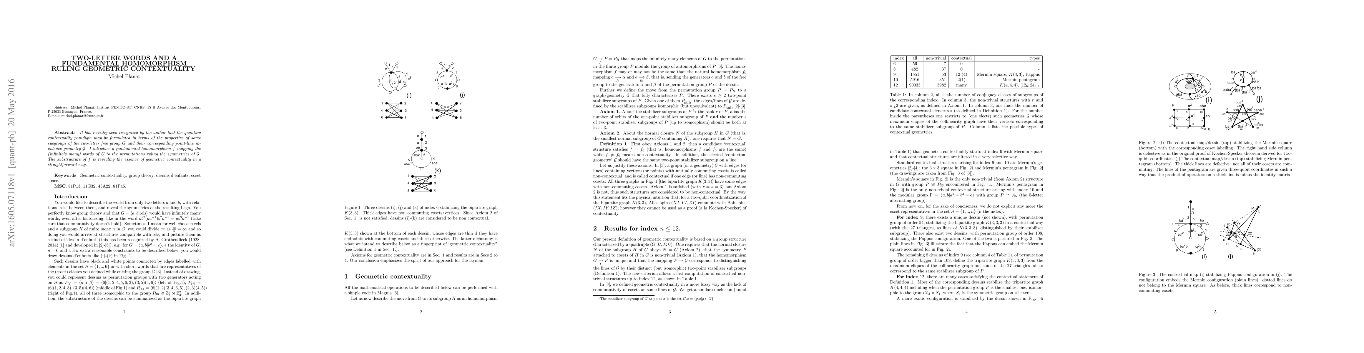 It has recently been recognized by the author that the quantum contextuality paradigm may be formulated in terms of the properties of some subgroups of the two-letter free group $G$ and their corresponding point-line incidence geometry $\mathcal{G}$. I introduce a fundamental homomorphism $f$ mapping the (infinitely many) words of G to the permutations ruling the symmetries of $\mathcal{G}$. The substructure of $f$ is revealing the essence of geometric contextuality in a straightforward way.