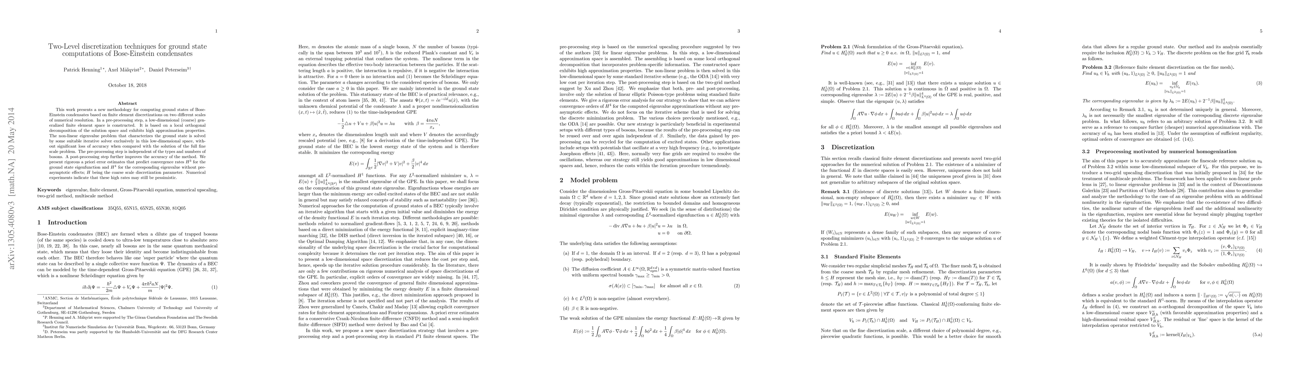 This paper introduces a two-level discretization technique for computing ground states of Bose-Einstein condensates, utilizing a coarse generalized finite element space for efficient pre-processing and iterative solving, followed by post-processing for enhanced accuracy. The method provides rigorous error estimates and demonstrates high convergence rates.
