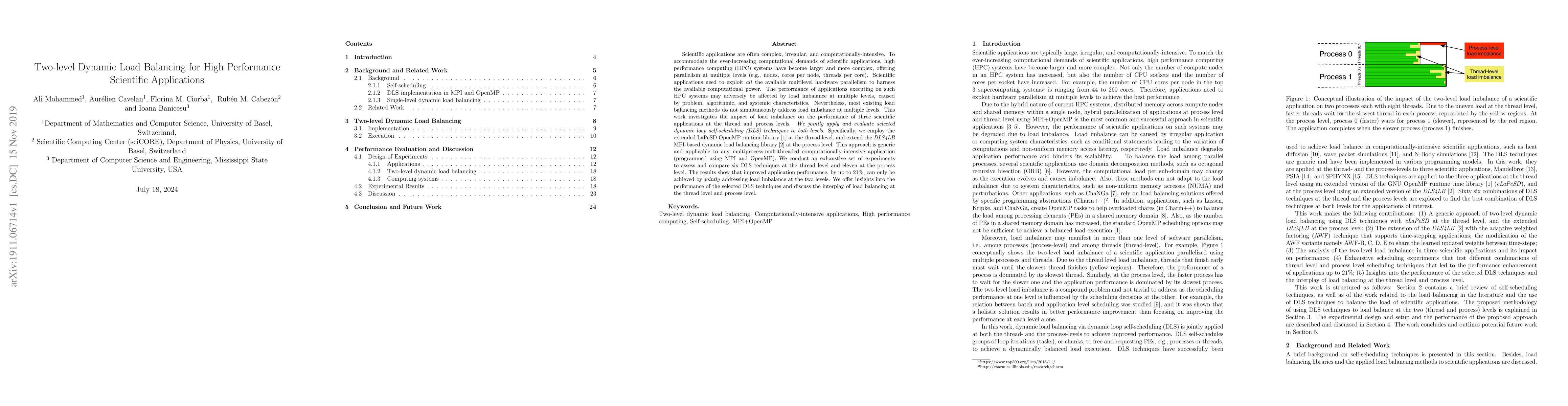 This paper explores the impact of multilevel load imbalance on high-performance scientific applications and proposes a two-level dynamic load balancing approach using DLS techniques. It demonstrates that addressing load imbalance at both the thread and process levels can improve application performance by up to 21%.
